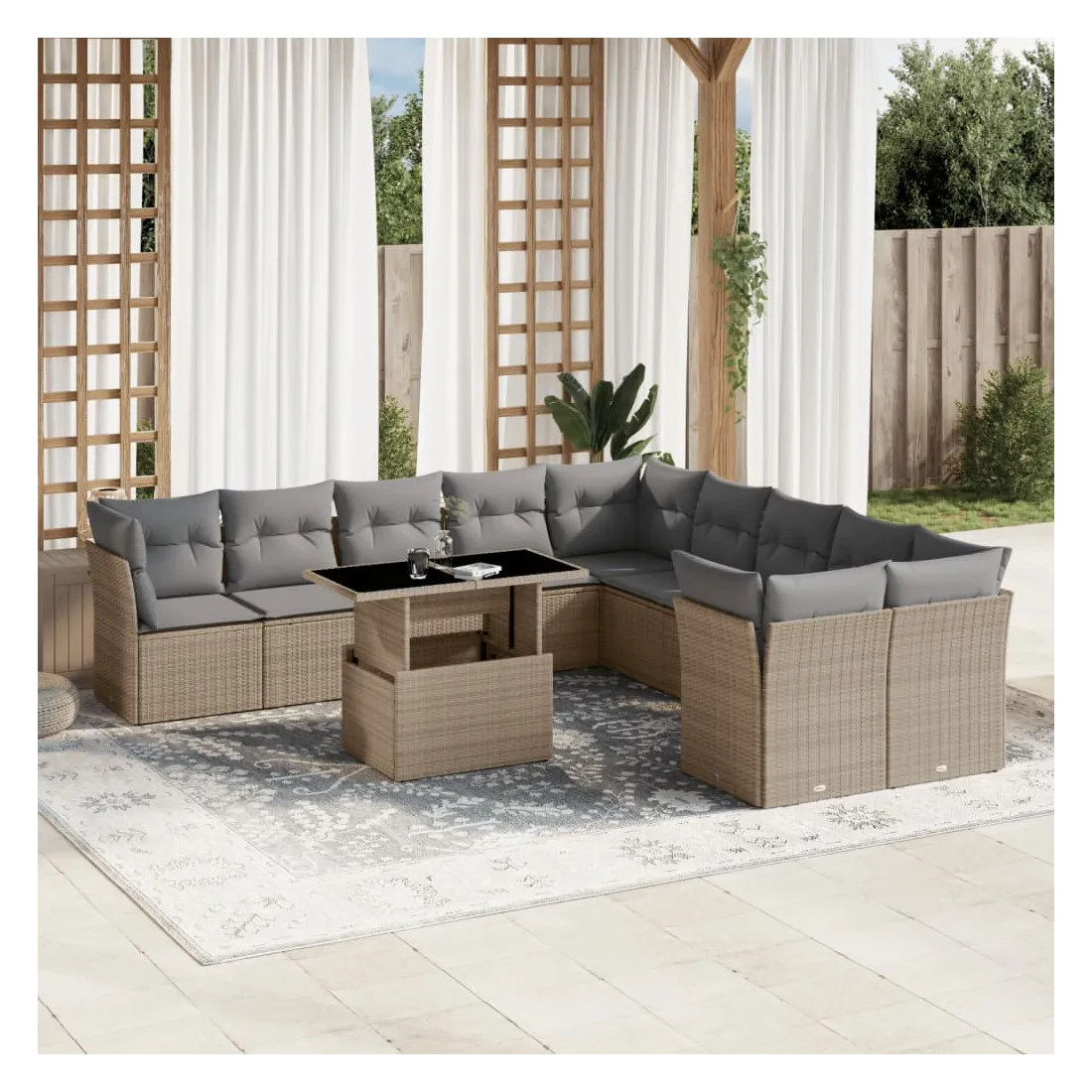 Cet ensemble de canapés de jardin est le complément parfait de votre arrière-cour, terrasse ou patio, offrant un espace confortable et accueillant pour discuter avec la famille et les amis ou simplement se détendre et profiter de l'extérieur. Matériau durable : la résine tressée, également connue sous le nom de poly rotin, est un matériau synthétique solide et nécessitant peu d'entretien qui ressemble au rotin naturel. Il est léger, facile à nettoyer et couramment utilisé pour les meubles d'extérieur en raison de sa durabilité et de ses propriétés de résistance aux intempéries.Dessus de table réglable : le dessus de table peut être soulevé pour rendre la table plus haute, ce qui transforme la table d'extérieur d'une table basse à une table de salle à manger. Elle est parfaite pour recevoir des invités ou prendre des repas à l'extérieur.Expérience d'assise confortable : ce mobilier d'extérieur, doté de coussins épais, offre une expérience d'assise confortable.Housse amovible et lavable : ces coussins de siège sont dotés de housses amovibles pour un lavage et un entretien faciles.Conception modulaire : cet ensemble de meubles d'extérieur a une conception modulaire, ce qui le rend complètement flexible et facile à déplacer, afin que vous puissiez créer un agencement de meubles d'extérieur personnalisé. Bon à savoir :Pour que vos meubles d'extérieur restent beaux, nous vous recommandons de les protéger avec une housse imperméable.