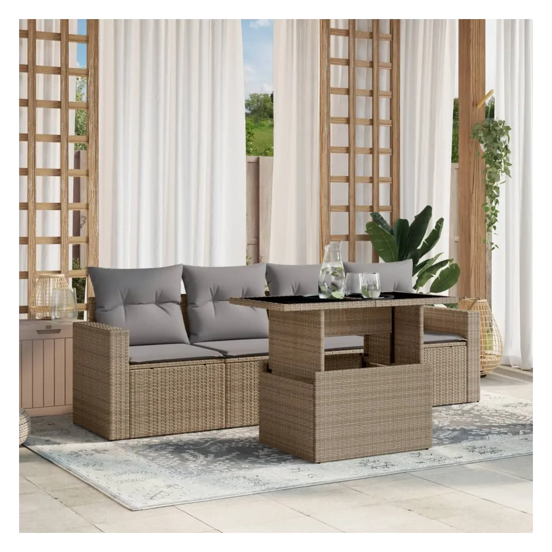Cet ensemble de canapés de jardin est le complément parfait de votre arrière-cour, terrasse ou patio, offrant un espace confortable et accueillant pour discuter avec la famille et les amis ou simplement se détendre et profiter de l'extérieur. Matériau durable : la résine tressée, également connue sous le nom de poly rotin, est un matériau synthétique solide et nécessitant peu d'entretien qui ressemble au rotin naturel. Il est léger, facile à nettoyer et couramment utilisé pour les meubles d'extérieur en raison de sa durabilité et de ses propriétés de résistance aux intempéries.Dessus de table réglable : le dessus de table peut être soulevé pour rendre la table plus haute, ce qui transforme la table d'extérieur d'une table basse à une table de salle à manger. Elle est parfaite pour recevoir des invités ou prendre des repas à l'extérieur.Expérience d'assise confortable : ce mobilier d'extérieur, doté de coussins épais, offre une expérience d'assise confortable.Housse amovible et lavable : ces coussins de siège sont dotés de housses amovibles pour un lavage et un entretien faciles.Conception modulaire : cet ensemble de meubles d'extérieur a une conception modulaire, ce qui le rend complètement flexible et facile à déplacer, afin que vous puissiez créer un agencement de meubles d'extérieur personnalisé. Bon à savoir :Pour que vos meubles d'extérieur restent beaux, nous vous recommandons de les protéger avec une housse imperméable.