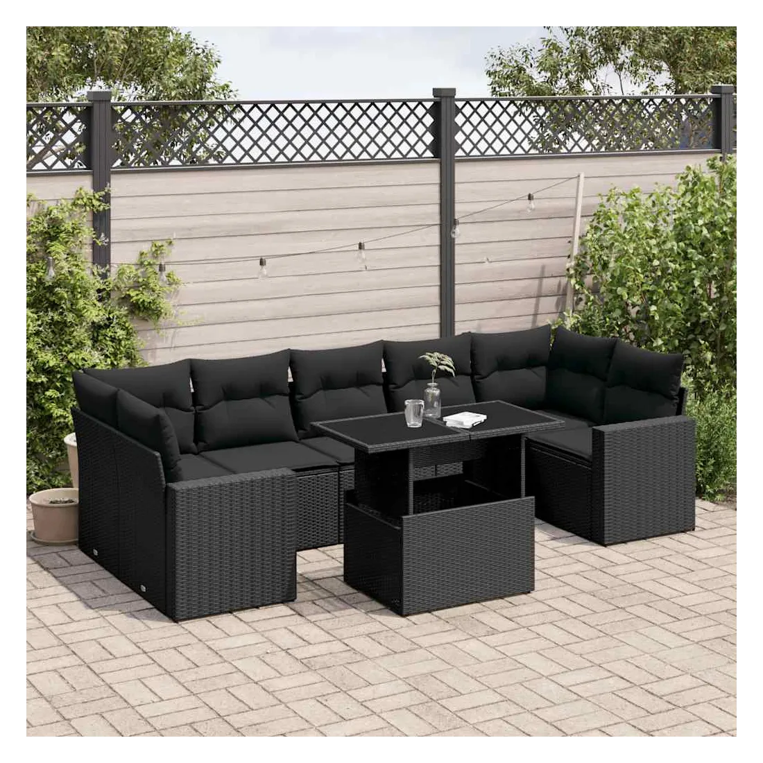 Cet ensemble de canapés de jardin est le complément parfait de votre arrière-cour, terrasse ou patio, offrant un espace confortable et accueillant pour discuter avec la famille et les amis ou simplement se détendre et profiter de l'extérieur. Matériau durable : la résine tressée, également connue sous le nom de poly rotin, est un matériau synthétique solide et nécessitant peu d'entretien qui ressemble au rotin naturel. Il est léger, facile à nettoyer et couramment utilisé pour les meubles d'extérieur en raison de sa durabilité et de ses propriétés de résistance aux intempéries.Dessus de table réglable : le dessus de table peut être soulevé pour rendre la table plus haute, ce qui transforme la table d'extérieur d'une table basse à une table de salle à manger. Elle est parfaite pour recevoir des invités ou prendre des repas à l'extérieur.Expérience d'assise confortable : ce mobilier d'extérieur, doté de coussins épais, offre une expérience d'assise confortable.Housse amovible et lavable : ces coussins de siège sont dotés de housses amovibles pour un lavage et un entretien faciles.Conception modulaire : cet ensemble de meubles d'extérieur a une conception modulaire, ce qui le rend complètement flexible et facile à déplacer, afin que vous puissiez créer un agencement de meubles d'extérieur personnalisé. Bon à savoir :Pour que vos meubles d'extérieur restent beaux, nous vous recommandons de les protéger avec une housse imperméable.