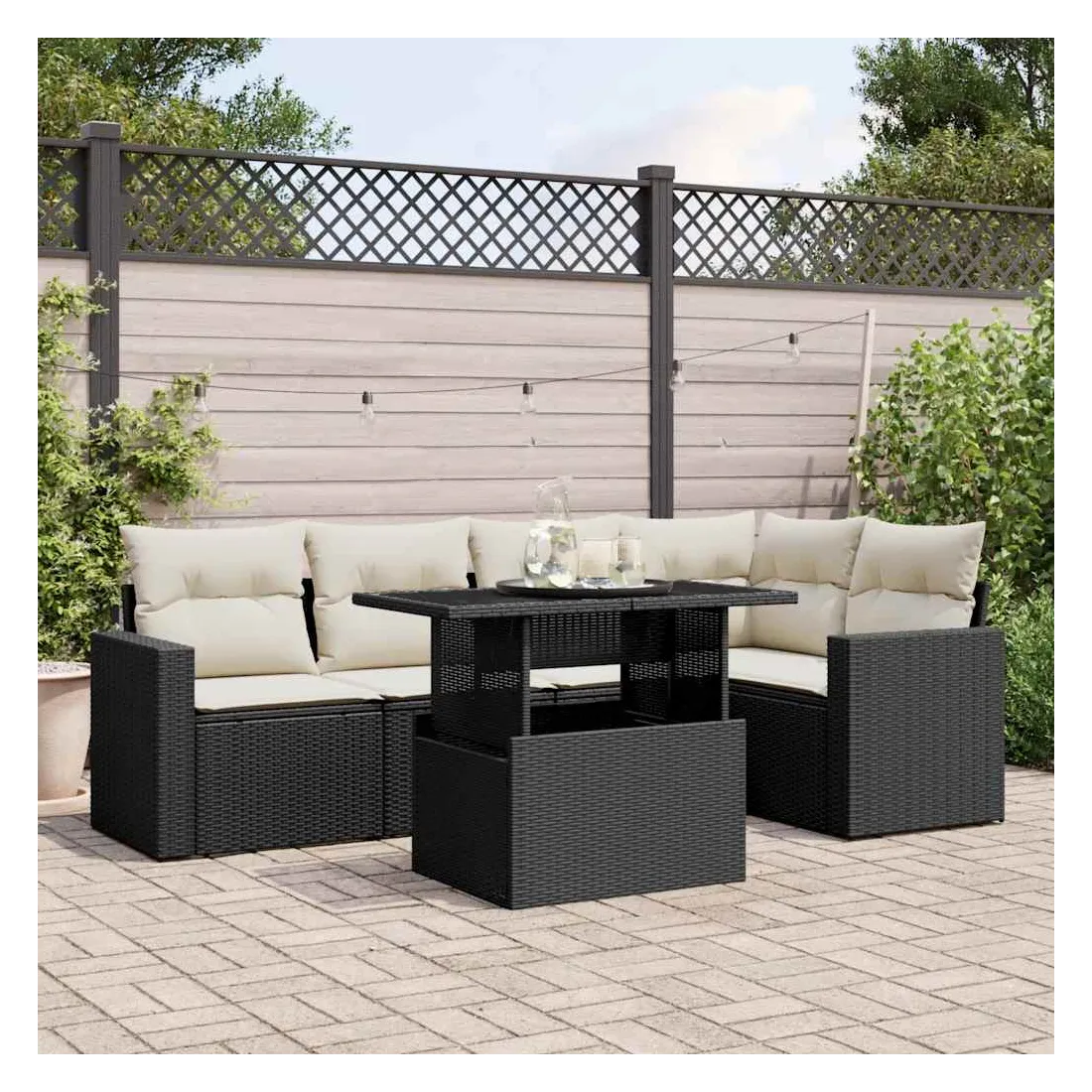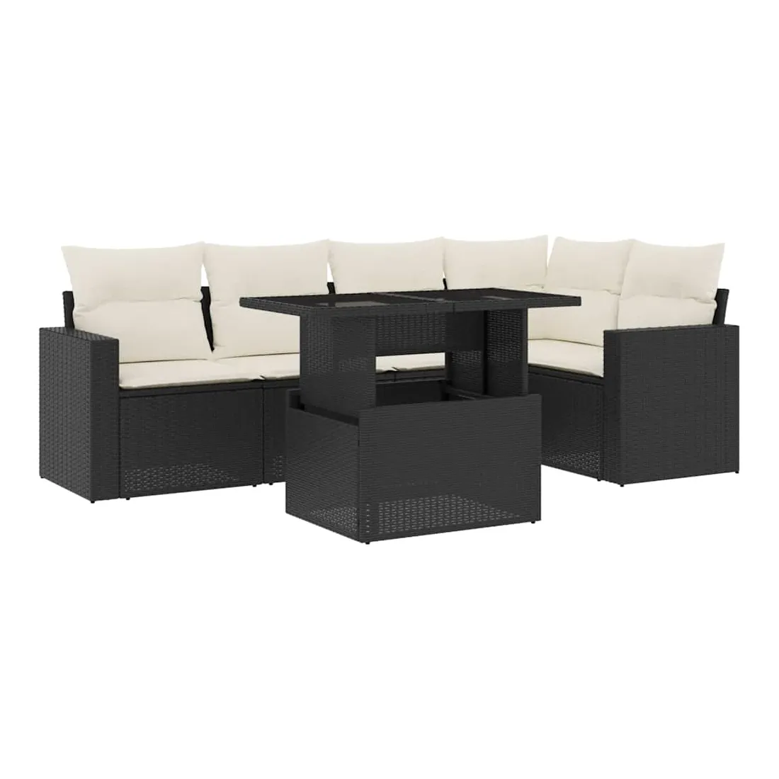 Salon de jardin 6 pcs avec coussins noir résine tressée