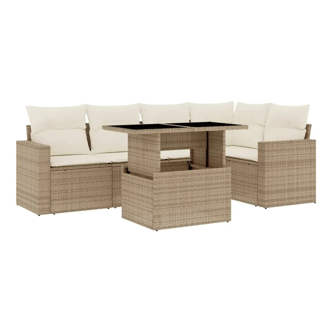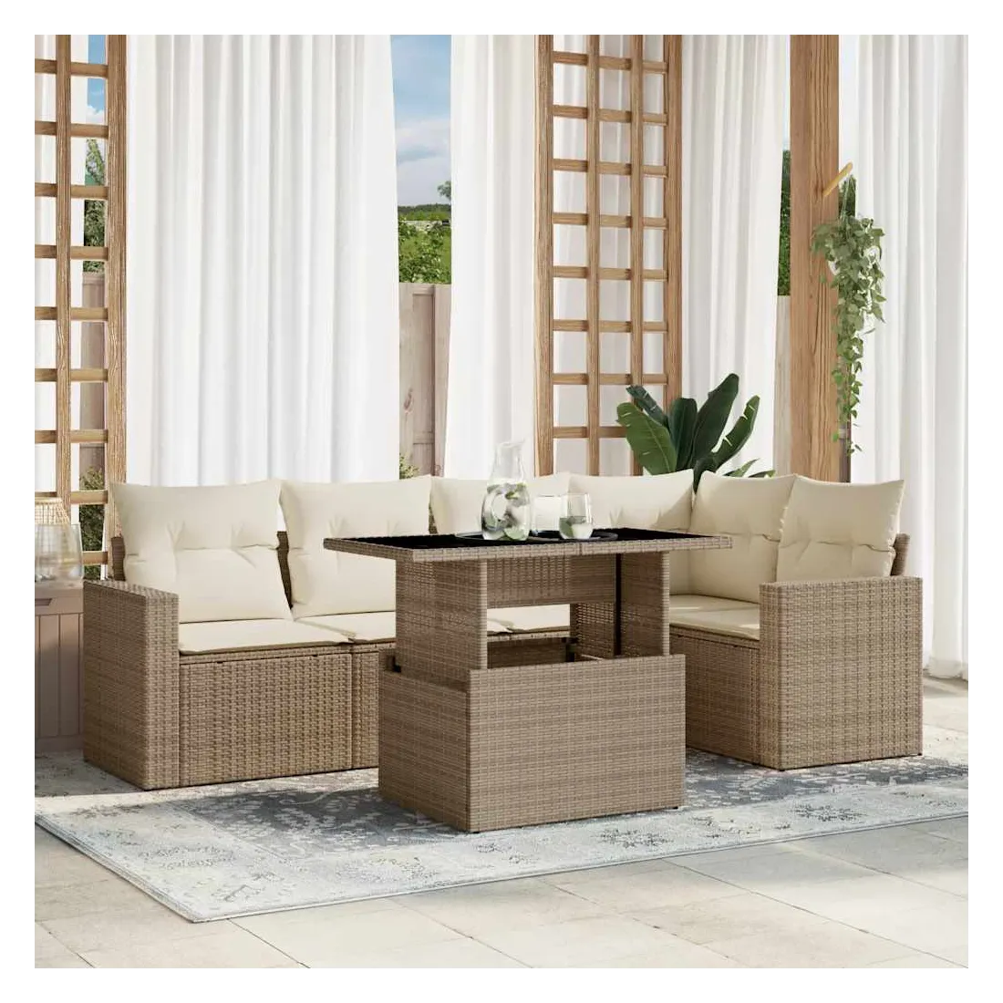 Salon de jardin avec coussins 6 pcs beige résine tressée