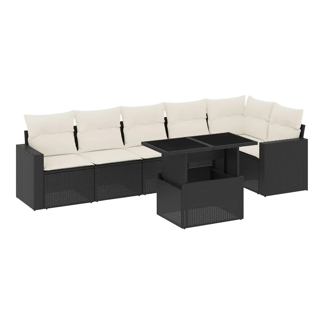 Salon de jardin 7 pcs avec coussins noir résine tressée