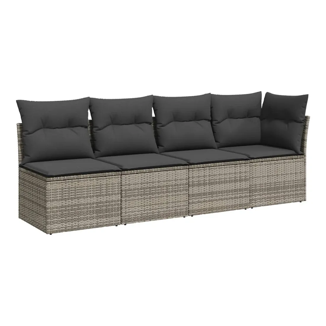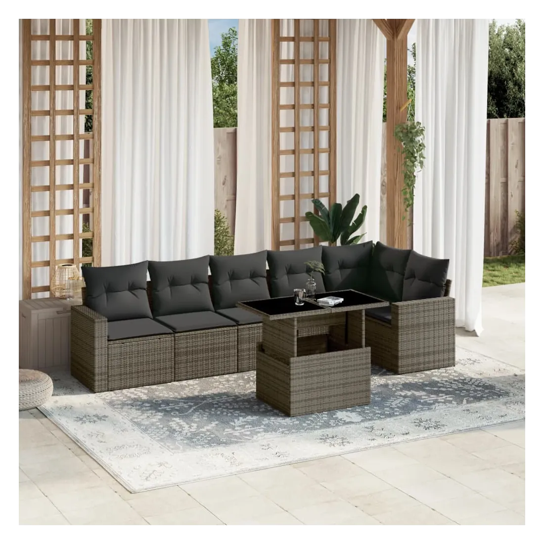 Salon de jardin avec coussins 7 pcs gris résine tressée