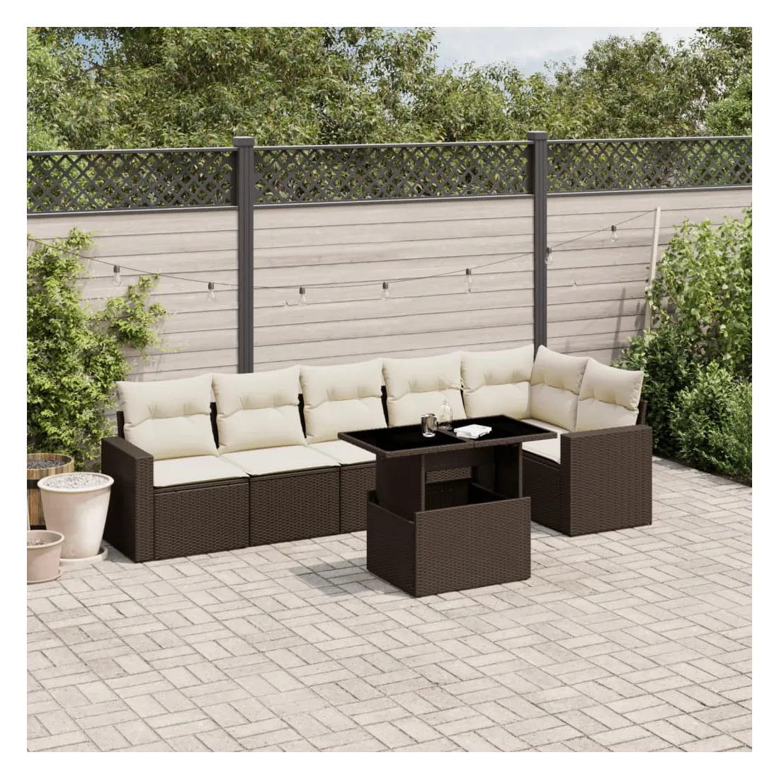 Cet ensemble de canapés de jardin est le complément parfait de votre arrière-cour, terrasse ou patio, offrant un espace confortable et accueillant pour discuter avec la famille et les amis ou simplement se détendre et profiter de l'extérieur. Matériau durable : la résine tressée, également connue sous le nom de poly rotin, est un matériau synthétique solide et nécessitant peu d'entretien qui ressemble au rotin naturel. Il est léger, facile à nettoyer et couramment utilisé pour les meubles d'extérieur en raison de sa durabilité et de ses propriétés de résistance aux intempéries.Dessus de table réglable : le dessus de table peut être soulevé pour rendre la table plus haute, ce qui transforme la table d'extérieur d'une table basse à une table de salle à manger. Elle est parfaite pour recevoir des invités ou prendre des repas à l'extérieur.Expérience d'assise confortable : ce mobilier d'extérieur, doté de coussins épais, offre une expérience d'assise confortable.Housse amovible et lavable : ces coussins de siège sont dotés de housses amovibles pour un lavage et un entretien faciles.Conception modulaire : cet ensemble de meubles d'extérieur a une conception modulaire, ce qui le rend complètement flexible et facile à déplacer, afin que vous puissiez créer un agencement de meubles d'extérieur personnalisé. Bon à savoir :Pour que vos meubles d'extérieur restent beaux, nous vous recommandons de les protéger avec une housse imperméable.