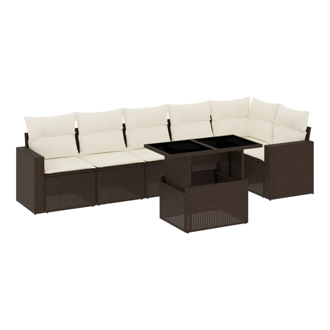 Salon de jardin avec coussins 7 pcs marron résine tressée