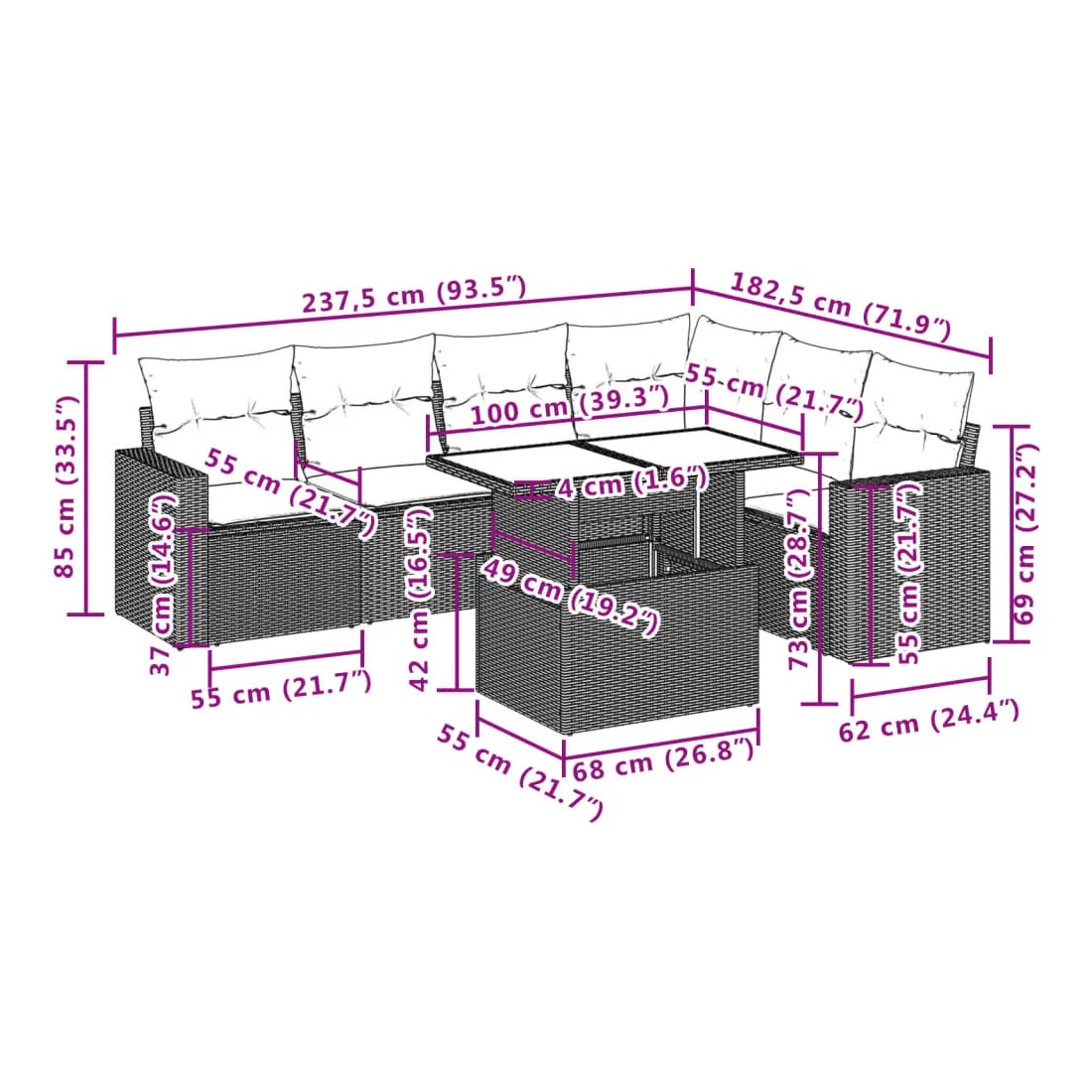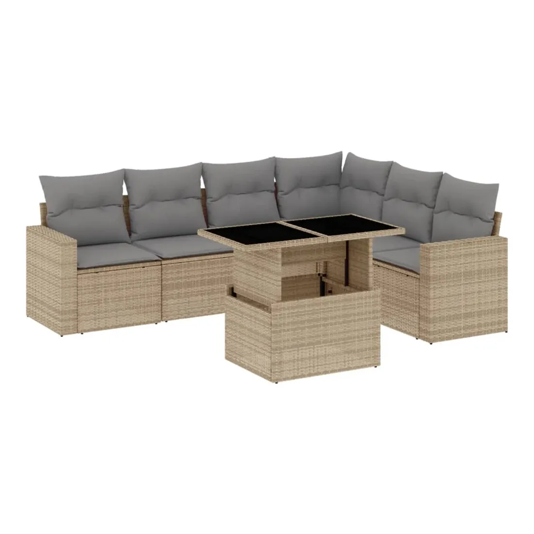Salon de jardin avec coussins 7 pcs beige résine tressée