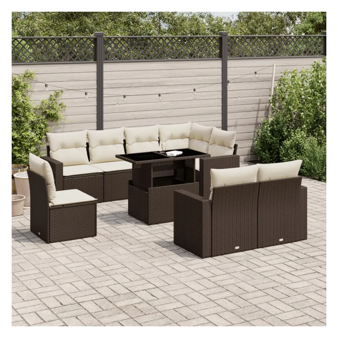 Cet ensemble de canapés de jardin est le complément parfait de votre arrière-cour, terrasse ou patio, offrant un espace confortable et accueillant pour discuter avec la famille et les amis ou simplement se détendre et profiter de l'extérieur. Matériau durable : la résine tressée, également connue sous le nom de poly rotin, est un matériau synthétique solide et nécessitant peu d'entretien qui ressemble au rotin naturel. Il est léger, facile à nettoyer et couramment utilisé pour les meubles d'extérieur en raison de sa durabilité et de ses propriétés de résistance aux intempéries.Dessus de table réglable : le dessus de table peut être soulevé pour rendre la table plus haute, ce qui transforme la table d'extérieur d'une table basse à une table de salle à manger. Elle est parfaite pour recevoir des invités ou prendre des repas à l'extérieur.Expérience d'assise confortable : ce mobilier d'extérieur, doté de coussins épais, offre une expérience d'assise confortable.Housse amovible et lavable : ces coussins de siège sont dotés de housses amovibles pour un lavage et un entretien faciles.Conception modulaire : cet ensemble de meubles d'extérieur a une conception modulaire, ce qui le rend complètement flexible et facile à déplacer, afin que vous puissiez créer un agencement de meubles d'extérieur personnalisé. Bon à savoir :Pour que vos meubles d'extérieur restent beaux, nous vous recommandons de les protéger avec une housse imperméable.
