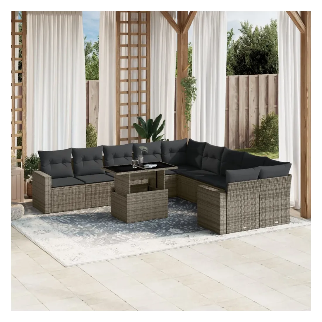 Salon de jardin 11 pcs avec coussins gris résine tressée