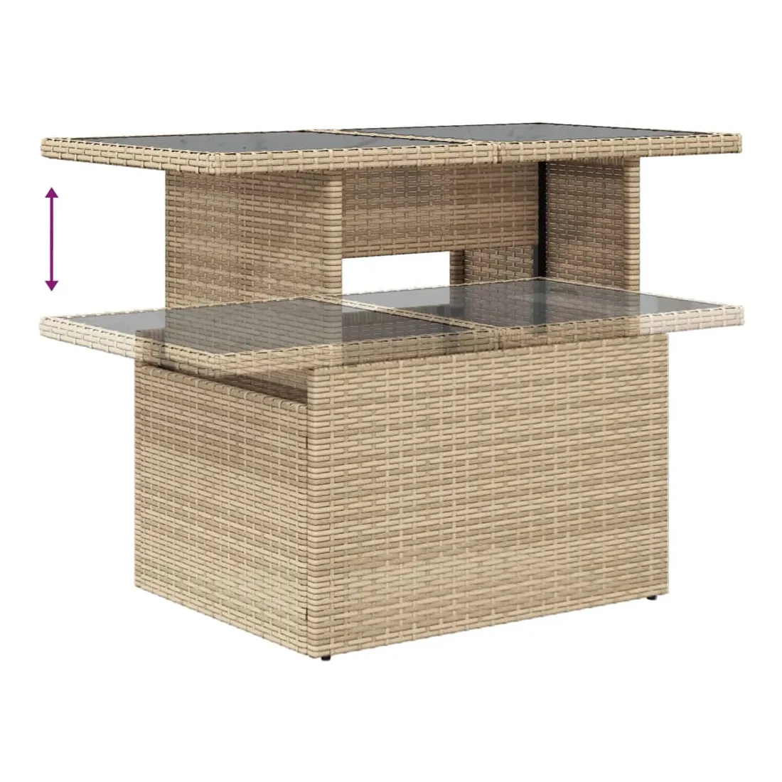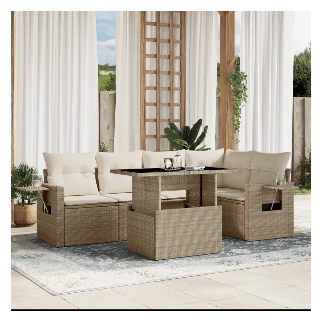Cet ensemble de canapés de jardin est le complément parfait de votre arrière-cour, terrasse ou patio, offrant un espace confortable et accueillant pour discuter avec la famille et les amis ou simplement se détendre et profiter de l'extérieur. Matériau durable : la résine tressée, également connue sous le nom de poly rotin, est un matériau synthétique solide et nécessitant peu d'entretien qui ressemble au rotin naturel. Il est léger, facile à nettoyer et couramment utilisé pour les meubles d'extérieur en raison de sa durabilité et de ses propriétés de résistance aux intempéries.Dessus de table réglable : le dessus de table peut être soulevé pour rendre la table plus haute, ce qui transforme la table d'extérieur d'une table basse à une table de salle à manger. Elle est parfaite pour recevoir des invités ou prendre des repas à l'extérieur.Table d'appoint pratique : ce mobilier d'extérieur comprend des tables d'appoint pliables avec un ressort à gaz sur les accoudoirs, offrant des endroits pratiques pour garder vos essentiels à portée de main. Expérience d'assise confortable : ce mobilier d'extérieur, doté de coussins épais, offre une expérience d'assise confortable.Conception modulaire : cet ensemble de meubles d'extérieur a une conception modulaire, ce qui le rend complètement flexible et facile à déplacer, afin que vous puissiez créer un agencement de meubles d'extérieur personnalisé. Bon à savoir :Pour que vos meubles d'extérieur restent beaux, nous vous recommandons de les protéger avec une housse imperméable.
