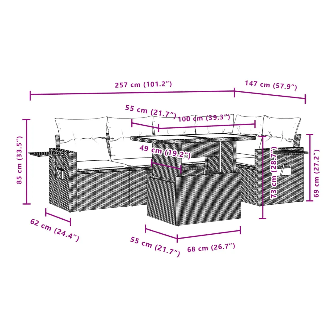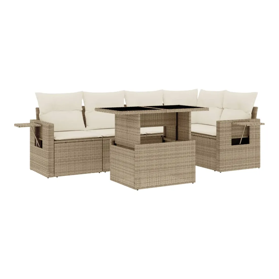 Salon de jardin avec coussins 6 pcs beige résine tressée