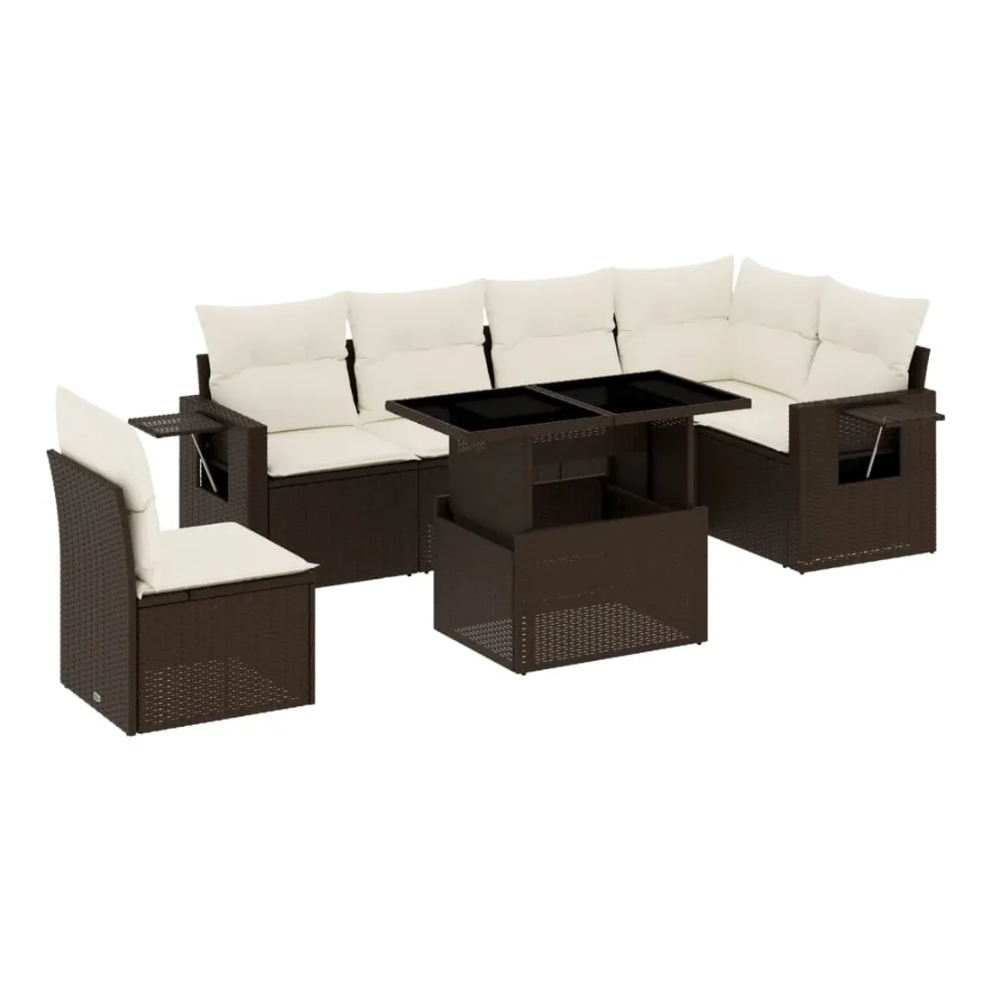Salon de jardin avec coussins 7 pcs marron résine tressée
