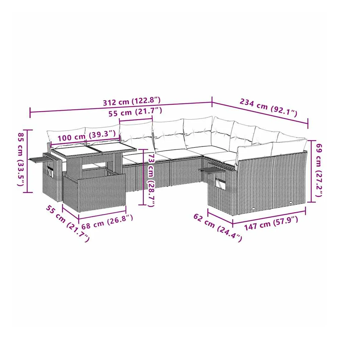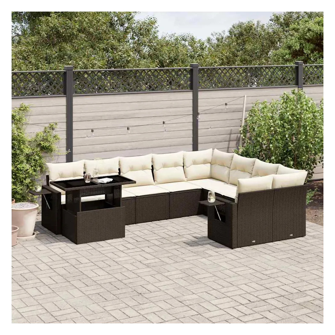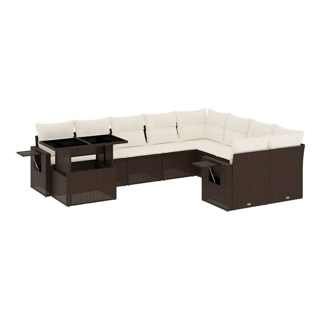 Salon de jardin 10 pcs avec coussins marron résine tressée