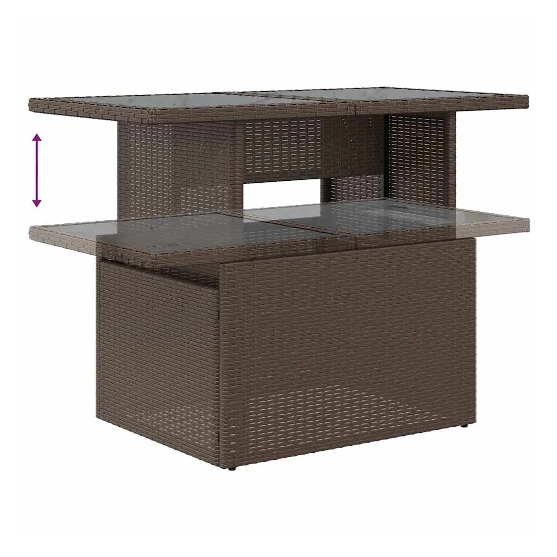 Cet ensemble de canapés de jardin est le complément parfait de votre arrière-cour, terrasse ou patio, offrant un espace confortable et accueillant pour discuter avec la famille et les amis ou simplement se détendre et profiter de l'extérieur. Matériau durable : la résine tressée, également connue sous le nom de poly rotin, est un matériau synthétique solide et nécessitant peu d'entretien qui ressemble au rotin naturel. Il est léger, facile à nettoyer et couramment utilisé pour les meubles d'extérieur en raison de sa durabilité et de ses propriétés de résistance aux intempéries.Dessus de table réglable : le dessus de table peut être soulevé pour rendre la table plus haute, ce qui transforme la table d'extérieur d'une table basse à une table de salle à manger. Elle est parfaite pour recevoir des invités ou prendre des repas à l'extérieur.Table d'appoint pratique : ce mobilier d'extérieur comprend des tables d'appoint pliables avec un ressort à gaz sur les accoudoirs, offrant des endroits pratiques pour garder vos essentiels à portée de main. Expérience d'assise confortable : ce mobilier d'extérieur, doté de coussins épais, offre une expérience d'assise confortable.Conception modulaire : cet ensemble de meubles d'extérieur a une conception modulaire, ce qui le rend complètement flexible et facile à déplacer, afin que vous puissiez créer un agencement de meubles d'extérieur personnalisé. Bon à savoir :Pour que vos meubles d'extérieur restent beaux, nous vous recommandons de les protéger avec une housse imperméable.