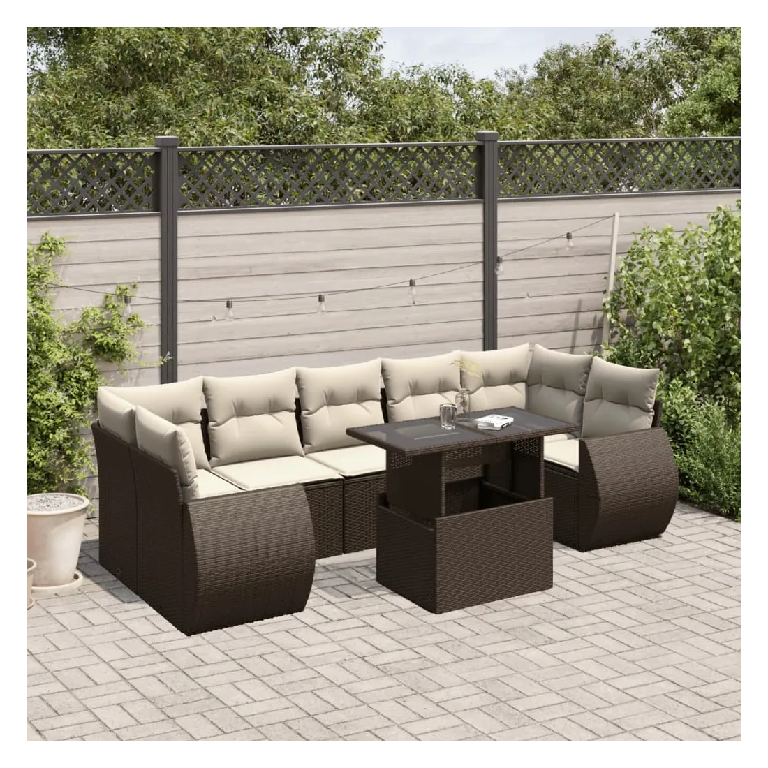 Cet ensemble de canapés de jardin est le complément parfait de votre arrière-cour, terrasse ou patio, offrant un espace confortable et accueillant pour discuter avec la famille et les amis ou simplement se détendre et profiter de l'extérieur. Matériau durable : la résine tressée, également connue sous le nom de poly rotin, est un matériau synthétique solide et nécessitant peu d'entretien qui ressemble au rotin naturel. Elle est légère, facile à nettoyer et couramment utilisée pour les meubles d'extérieur en raison de sa durabilité et de ses propriétés de résistance aux intempéries.Dessus de table réglable : le dessus de table peut être soulevé pour rendre la table plus haute, ce qui transforme la table d'extérieur d'une table basse à une table de salle à manger. Elle est parfaite pour recevoir des invités ou prendre des repas à l'extérieur.Expérience d'assise confortable : ce mobilier d'extérieur, doté de coussins épais, offre une expérience d'assise confortable.Housse amovible et lavable : ces coussins de siège sont dotés de housses amovibles pour un lavage et un entretien faciles.Conception modulaire : cet ensemble de meubles d'extérieur a une conception modulaire, ce qui le rend complètement flexible et facile à déplacer, afin que vous puissiez créer un agencement de meubles d'extérieur personnalisé. Bon à savoir :Pour que vos meubles d'extérieur restent beaux, nous vous recommandons de les protéger avec une housse imperméable.