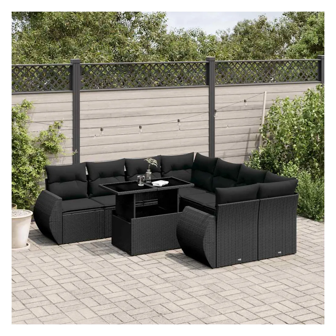 Cet ensemble de canapés de jardin est le complément parfait de votre arrière-cour, terrasse ou patio, offrant un espace confortable et accueillant pour discuter avec la famille et les amis ou simplement se détendre et profiter de l'extérieur. Matériau durable : la résine tressée, également connue sous le nom de poly rotin, est un matériau synthétique solide et nécessitant peu d'entretien qui ressemble au rotin naturel. Il est léger, facile à nettoyer et couramment utilisé pour les meubles d'extérieur en raison de sa durabilité et de ses propriétés de résistance aux intempéries.Dessus de table réglable : le dessus de table peut être soulevé pour rendre la table plus haute, ce qui transforme la table d'extérieur d'une table basse à une table de salle à manger. Elle est parfaite pour recevoir des invités ou prendre des repas à l'extérieur.Expérience d'assise confortable : ce mobilier d'extérieur, doté de coussins épais, offre une expérience d'assise confortable.Housse amovible et lavable : ces coussins de siège sont dotés de housses amovibles pour un lavage et un entretien faciles.Conception modulaire : cet ensemble de meubles d'extérieur a une conception modulaire, ce qui le rend complètement flexible et facile à déplacer, afin que vous puissiez créer un agencement de meubles d'extérieur personnalisé. Bon à savoir :Pour que vos meubles d'extérieur restent beaux, nous vous recommandons de les protéger avec une housse imperméable.