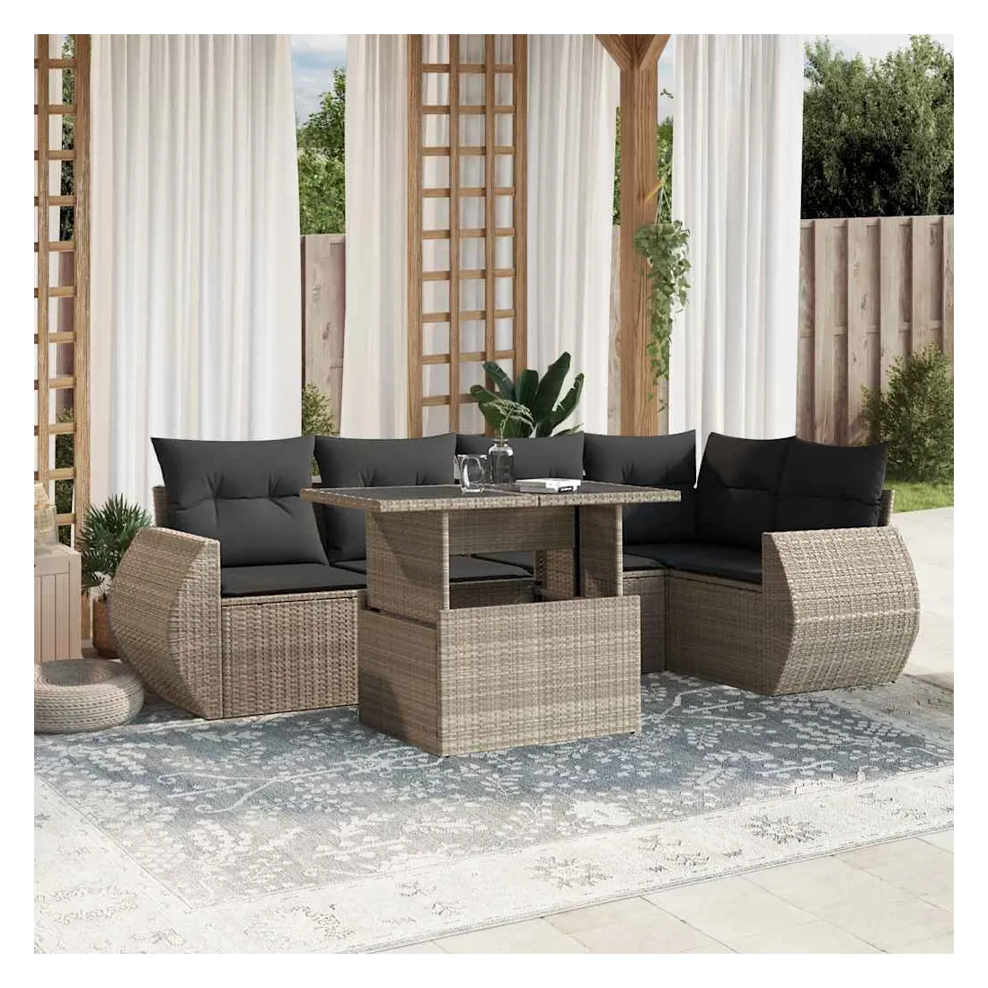 Cet ensemble de canapés de jardin est le complément parfait de votre arrière-cour, terrasse ou patio, offrant un espace confortable et accueillant pour discuter avec la famille et les amis ou simplement se détendre et profiter de l'extérieur. Matériau durable : la résine tressée, également connue sous le nom de poly rotin, est un matériau synthétique solide et nécessitant peu d'entretien qui ressemble au rotin naturel. Elle est légère, facile à nettoyer et couramment utilisée pour les meubles d'extérieur en raison de sa durabilité et de ses propriétés de résistance aux intempéries.Dessus de table réglable : le dessus de table peut être soulevé pour rendre la table plus haute, ce qui transforme la table d'extérieur d'une table basse à une table de salle à manger. Elle est parfaite pour recevoir des invités ou prendre des repas à l'extérieur.Expérience d'assise confortable : ce mobilier d'extérieur, doté de coussins épais, offre une expérience d'assise confortable.Housse amovible et lavable : ces coussins de siège sont dotés de housses amovibles pour un lavage et un entretien faciles.Conception modulaire : cet ensemble de meubles d'extérieur a une conception modulaire, ce qui le rend complètement flexible et facile à déplacer, afin que vous puissiez créer un agencement de meubles d'extérieur personnalisé. Bon à savoir :Pour que vos meubles d'extérieur restent beaux, nous vous recommandons de les protéger avec une housse imperméable.