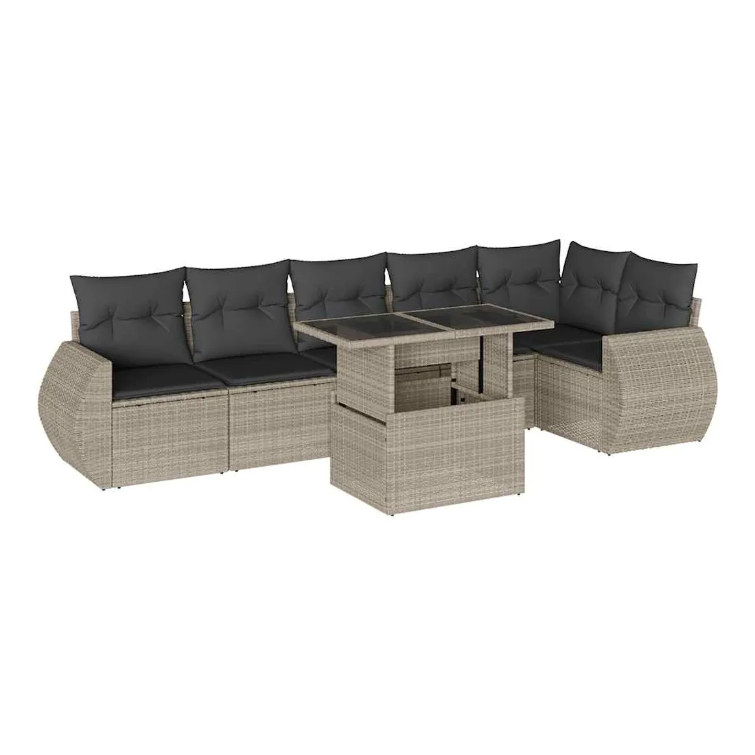 Salon de jardin avec coussins 7 pcs gris clair résine tressée