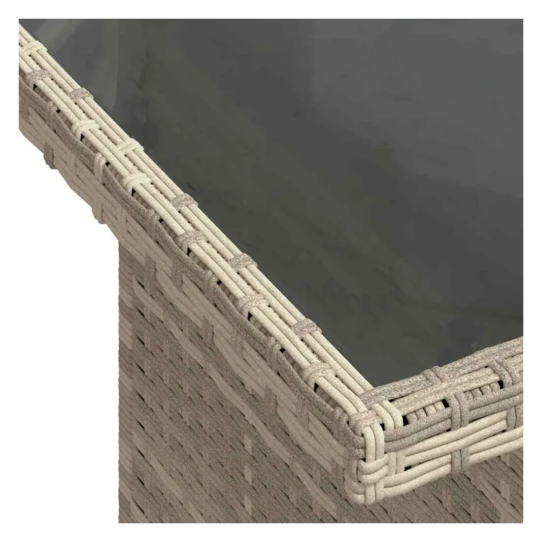 - Matériau : résine tressée, acier enduit de poudre, verre trempé