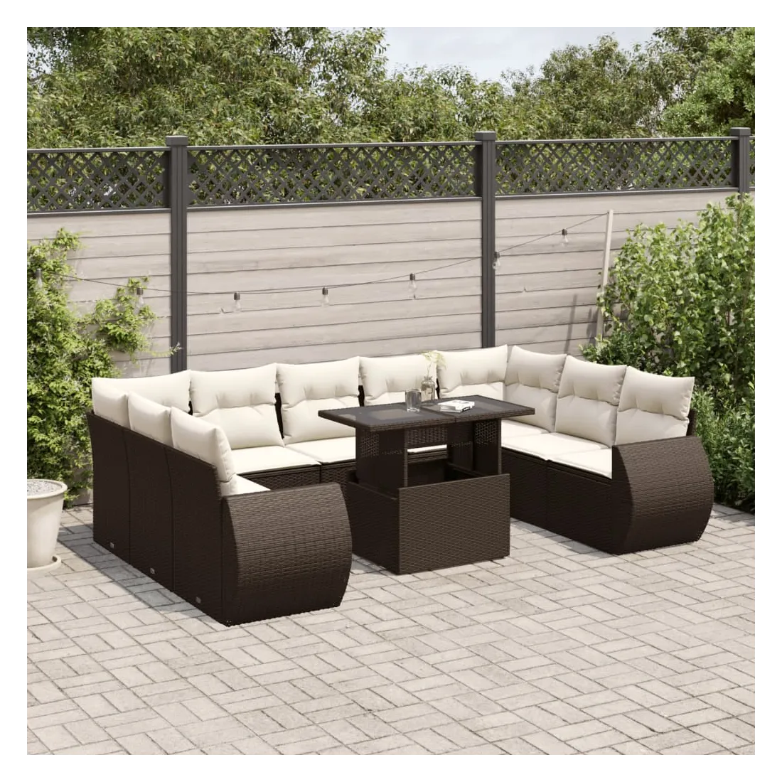 Cet ensemble de canapés de jardin est le complément parfait de votre arrière-cour, terrasse ou patio, offrant un espace confortable et accueillant pour discuter avec la famille et les amis ou simplement se détendre et profiter de l'extérieur. Matériau durable : la résine tressée, également connue sous le nom de poly rotin, est un matériau synthétique solide et nécessitant peu d'entretien qui ressemble au rotin naturel. Elle est légère, facile à nettoyer et couramment utilisée pour les meubles d'extérieur en raison de sa durabilité et de ses propriétés de résistance aux intempéries.Dessus de table réglable : le dessus de table peut être soulevé pour rendre la table plus haute, ce qui transforme la table d'extérieur d'une table basse à une table de salle à manger. Elle est parfaite pour recevoir des invités ou prendre des repas à l'extérieur.Expérience d'assise confortable : ce mobilier d'extérieur, doté de coussins épais, offre une expérience d'assise confortable.Housse amovible et lavable : ces coussins de siège sont dotés de housses amovibles pour un lavage et un entretien faciles.Conception modulaire : cet ensemble de meubles d'extérieur a une conception modulaire, ce qui le rend complètement flexible et facile à déplacer, afin que vous puissiez créer un agencement de meubles d'extérieur personnalisé. Bon à savoir :Pour que vos meubles d'extérieur restent beaux, nous vous recommandons de les protéger avec une housse imperméable.