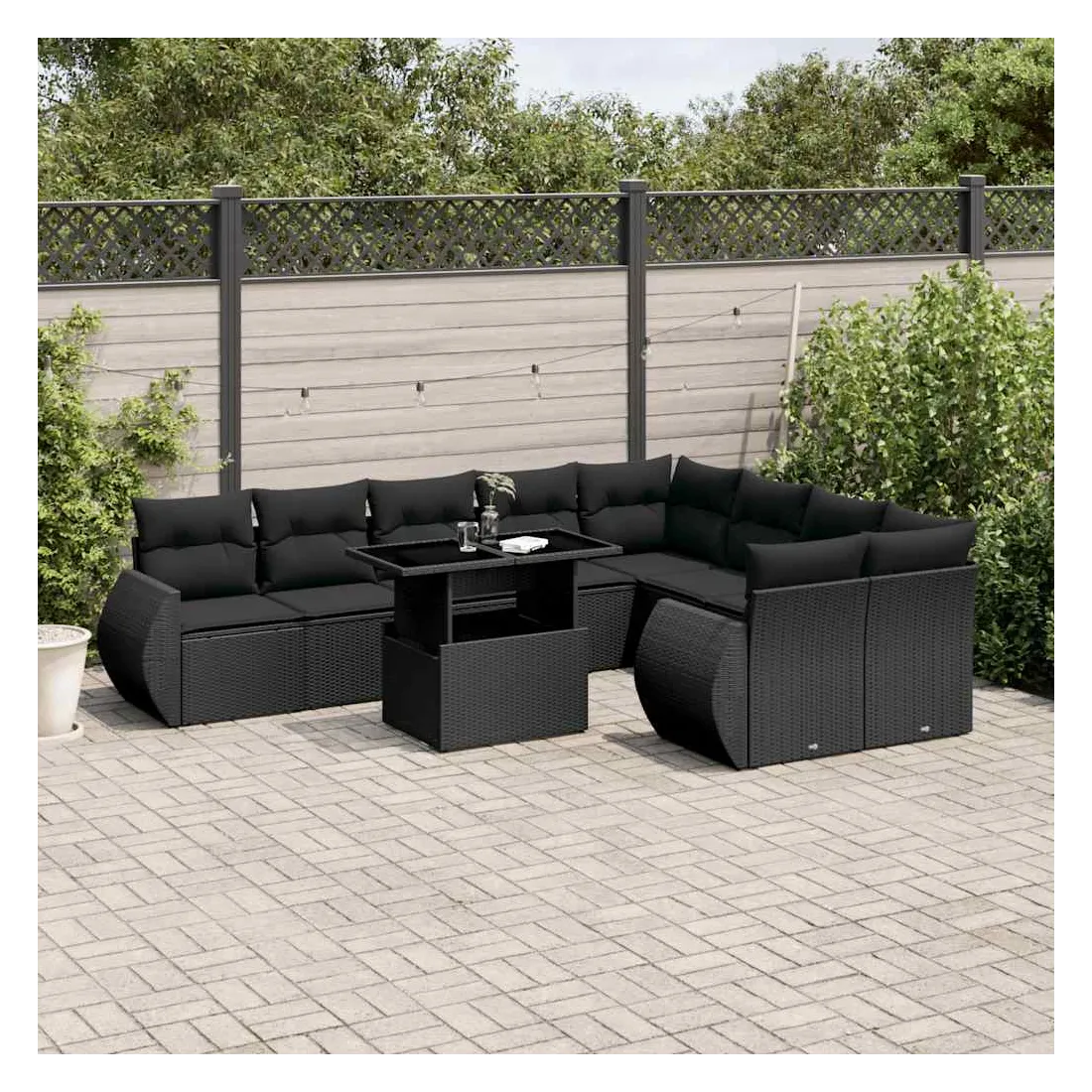 Cet ensemble de canapés de jardin est le complément parfait de votre arrière-cour, terrasse ou patio, offrant un espace confortable et accueillant pour discuter avec la famille et les amis ou simplement se détendre et profiter de l'extérieur. Matériau durable : la résine tressée, également connue sous le nom de poly rotin, est un matériau synthétique solide et nécessitant peu d'entretien qui ressemble au rotin naturel. Il est léger, facile à nettoyer et couramment utilisé pour les meubles d'extérieur en raison de sa durabilité et de ses propriétés de résistance aux intempéries.Dessus de table réglable : le dessus de table peut être soulevé pour rendre la table plus haute, ce qui transforme la table d'extérieur d'une table basse à une table de salle à manger. Elle est parfaite pour recevoir des invités ou prendre des repas à l'extérieur.Expérience d'assise confortable : ce mobilier d'extérieur, doté de coussins épais, offre une expérience d'assise confortable.Housse amovible et lavable : ces coussins de siège sont dotés de housses amovibles pour un lavage et un entretien faciles.Conception modulaire : cet ensemble de meubles d'extérieur a une conception modulaire, ce qui le rend complètement flexible et facile à déplacer, afin que vous puissiez créer un agencement de meubles d'extérieur personnalisé. Bon à savoir :Pour que vos meubles d'extérieur restent beaux, nous vous recommandons de les protéger avec une housse imperméable.