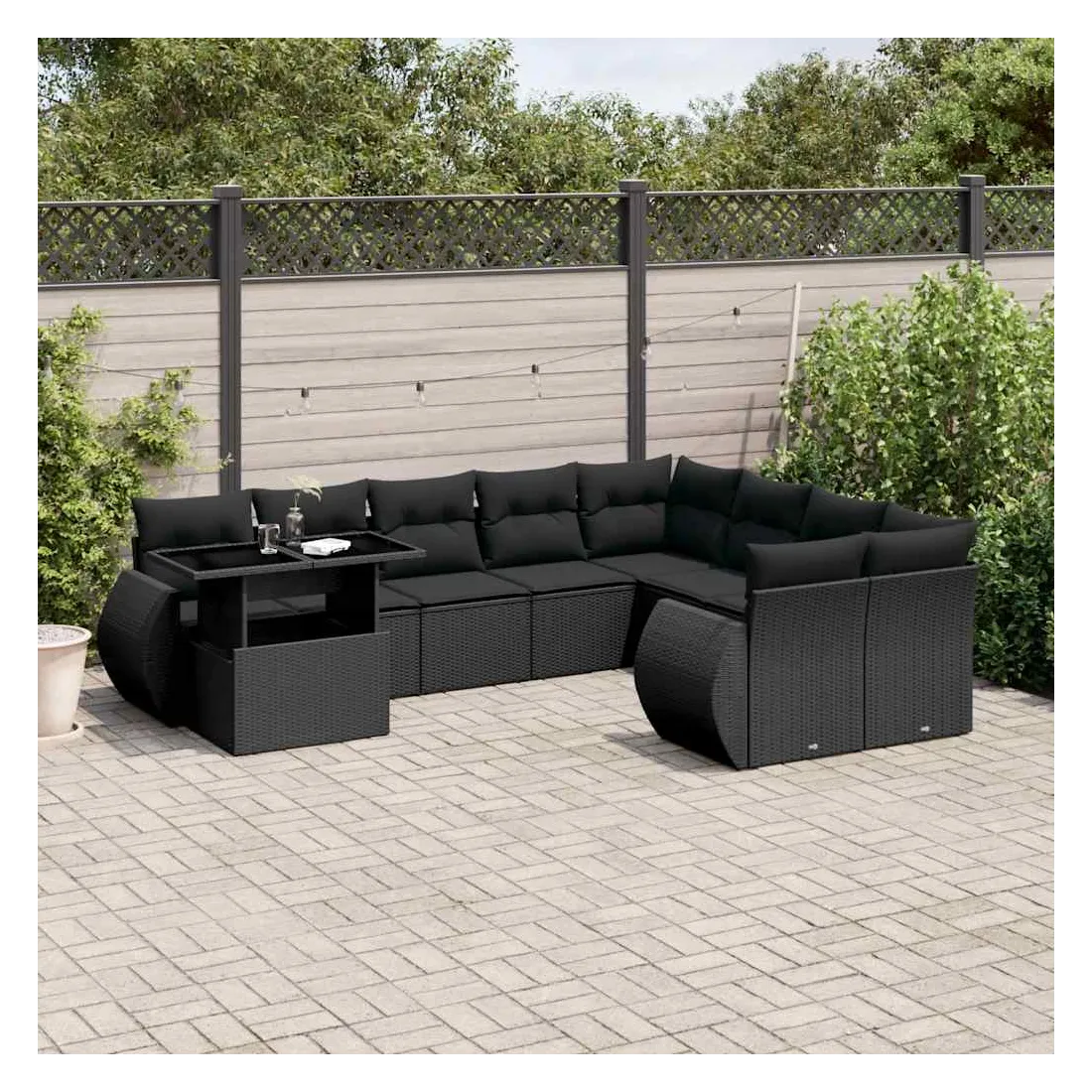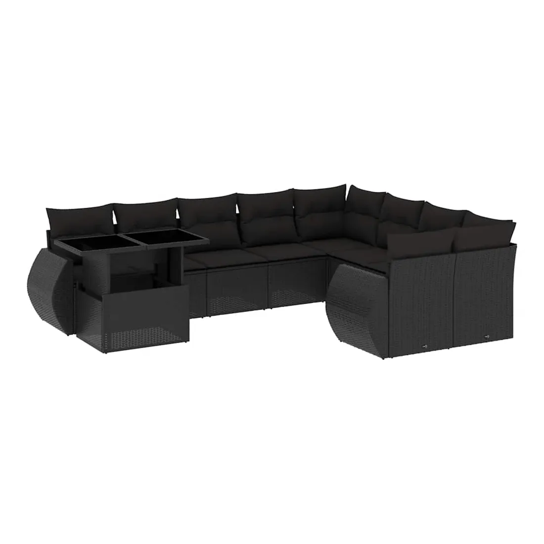 Salon de jardin 10 pcs avec coussins noir résine tressée