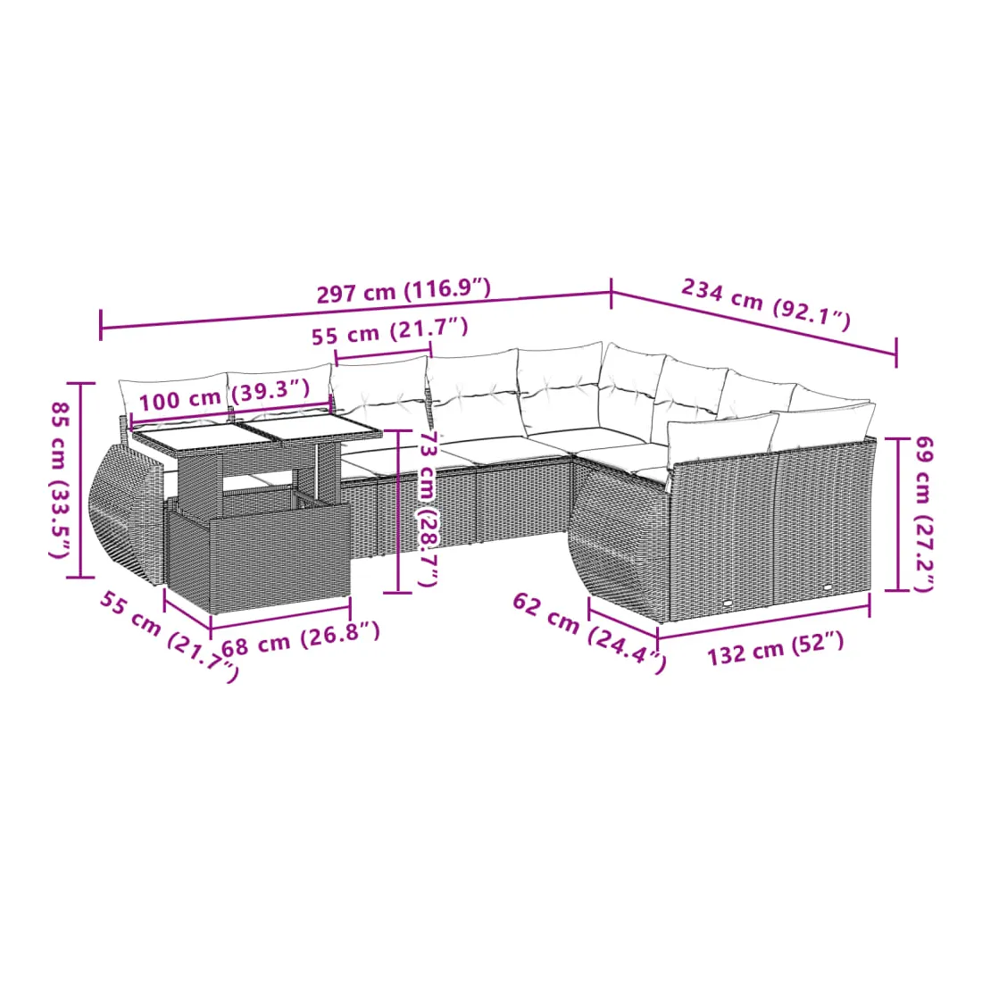 Salon de jardin 10 pcs avec coussins marron résine tressée