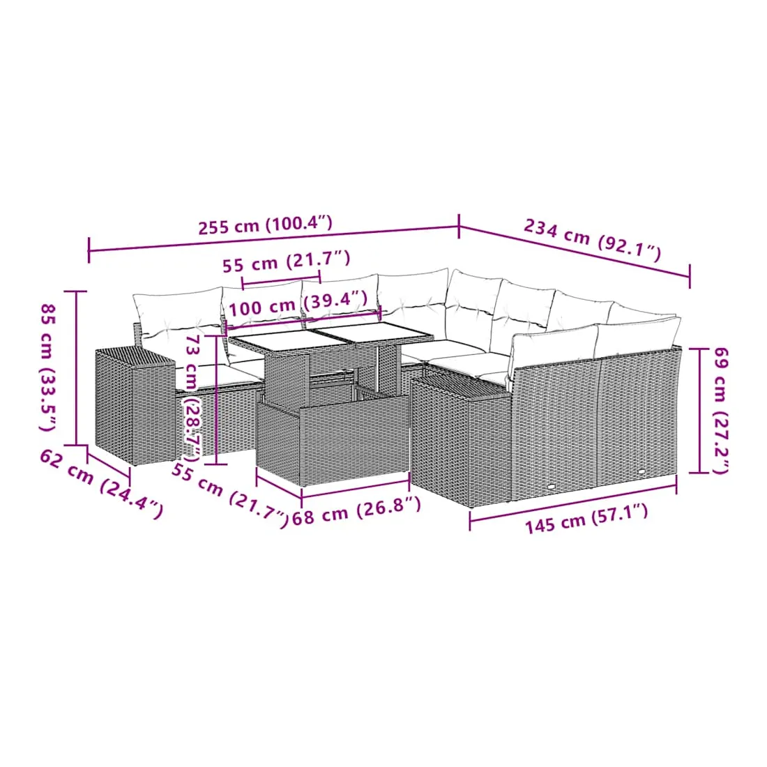 Cet ensemble de canapés de jardin est le complément parfait de votre arrière-cour, terrasse ou patio, offrant un espace confortable et accueillant pour discuter avec la famille et les amis ou simplement se détendre et profiter de l'extérieur. Matériau durable : la résine tressée, également connue sous le nom de poly rotin, est un matériau synthétique solide et nécessitant peu d'entretien qui ressemble au rotin naturel. Il est léger, facile à nettoyer et couramment utilisé pour les meubles d'extérieur en raison de sa durabilité et de ses propriétés de résistance aux intempéries.Dessus de table réglable : le dessus de table peut être soulevé pour rendre la table plus haute, ce qui transforme la table d'extérieur d'une table basse à une table de salle à manger. Elle est parfaite pour recevoir des invités ou prendre des repas à l'extérieur.Expérience d'assise confortable : ce mobilier d'extérieur, doté de coussins épais, offre une expérience d'assise confortable.Housse amovible et lavable : ces coussins de siège sont dotés de housses amovibles pour un lavage et un entretien faciles.Conception modulaire : cet ensemble de meubles d'extérieur a une conception modulaire, ce qui le rend complètement flexible et facile à déplacer, afin que vous puissiez créer un agencement de meubles d'extérieur personnalisé. Bon à savoir :Pour que vos meubles d'extérieur restent beaux, nous vous recommandons de les protéger avec une housse imperméable.