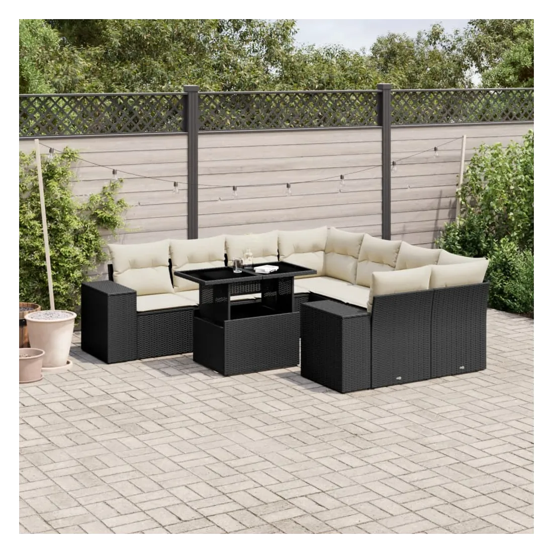 Cet ensemble de canapés de jardin est le complément parfait de votre arrière-cour, terrasse ou patio, offrant un espace confortable et accueillant pour discuter avec la famille et les amis ou simplement se détendre et profiter de l'extérieur. Matériau durable : la résine tressée, également connue sous le nom de poly rotin, est un matériau synthétique solide et nécessitant peu d'entretien qui ressemble au rotin naturel. Il est léger, facile à nettoyer et couramment utilisé pour les meubles d'extérieur en raison de sa durabilité et de ses propriétés de résistance aux intempéries.Dessus de table réglable : le dessus de table peut être soulevé pour rendre la table plus haute, ce qui transforme la table d'extérieur d'une table basse à une table de salle à manger. Elle est parfaite pour recevoir des invités ou prendre des repas à l'extérieur.Expérience d'assise confortable : ce mobilier d'extérieur, doté de coussins épais, offre une expérience d'assise confortable.Housse amovible et lavable : ces coussins de siège sont dotés de housses amovibles pour un lavage et un entretien faciles.Conception modulaire : cet ensemble de meubles d'extérieur a une conception modulaire, ce qui le rend complètement flexible et facile à déplacer, afin que vous puissiez créer un agencement de meubles d'extérieur personnalisé. Bon à savoir :Pour que vos meubles d'extérieur restent beaux, nous vous recommandons de les protéger avec une housse imperméable.