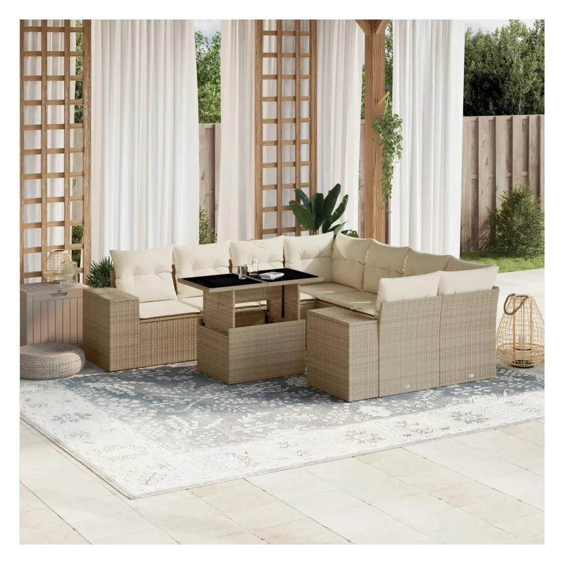Cet ensemble de canapés de jardin est le complément parfait de votre arrière-cour, terrasse ou patio, offrant un espace confortable et accueillant pour discuter avec la famille et les amis ou simplement se détendre et profiter de l'extérieur. Matériau durable : la résine tressée, également connue sous le nom de poly rotin, est un matériau synthétique solide et nécessitant peu d'entretien qui ressemble au rotin naturel. Il est léger, facile à nettoyer et couramment utilisé pour les meubles d'extérieur en raison de sa durabilité et de ses propriétés de résistance aux intempéries.Dessus de table réglable : le dessus de table peut être soulevé pour rendre la table plus haute, ce qui transforme la table d'extérieur d'une table basse à une table de salle à manger. Elle est parfaite pour recevoir des invités ou prendre des repas à l'extérieur.Expérience d'assise confortable : ce mobilier d'extérieur, doté de coussins épais, offre une expérience d'assise confortable.Housse amovible et lavable : ces coussins de siège sont dotés de housses amovibles pour un lavage et un entretien faciles.Conception modulaire : cet ensemble de meubles d'extérieur a une conception modulaire, ce qui le rend complètement flexible et facile à déplacer, afin que vous puissiez créer un agencement de meubles d'extérieur personnalisé. Bon à savoir :Pour que vos meubles d'extérieur restent beaux, nous vous recommandons de les protéger avec une housse imperméable.