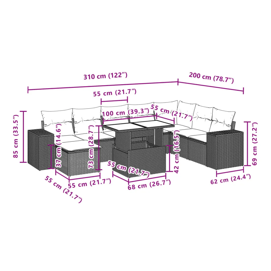 Cet ensemble de canapés de jardin est le complément parfait de votre arrière-cour, terrasse ou patio, offrant un espace confortable et accueillant pour discuter avec la famille et les amis ou simplement se détendre et profiter de l'extérieur. Matériau durable : la résine tressée, également connue sous le nom de poly rotin, est un matériau synthétique solide et nécessitant peu d'entretien qui ressemble au rotin naturel. Il est léger, facile à nettoyer et couramment utilisé pour les meubles d'extérieur en raison de sa durabilité et de ses propriétés de résistance aux intempéries.Dessus de table réglable : le dessus de table peut être soulevé pour rendre la table plus haute, ce qui transforme la table d'extérieur d'une table basse à une table de salle à manger. Elle est parfaite pour recevoir des invités ou prendre des repas à l'extérieur.Expérience d'assise confortable : ce mobilier d'extérieur, doté de coussins épais, offre une expérience d'assise confortable.Housse amovible et lavable : ces coussins de siège sont dotés de housses amovibles pour un lavage et un entretien faciles.Conception modulaire : cet ensemble de meubles d'extérieur a une conception modulaire, ce qui le rend complètement flexible et facile à déplacer, afin que vous puissiez créer un agencement de meubles d'extérieur personnalisé. Bon à savoir :Pour que vos meubles d'extérieur restent beaux, nous vous recommandons de les protéger avec une housse imperméable.