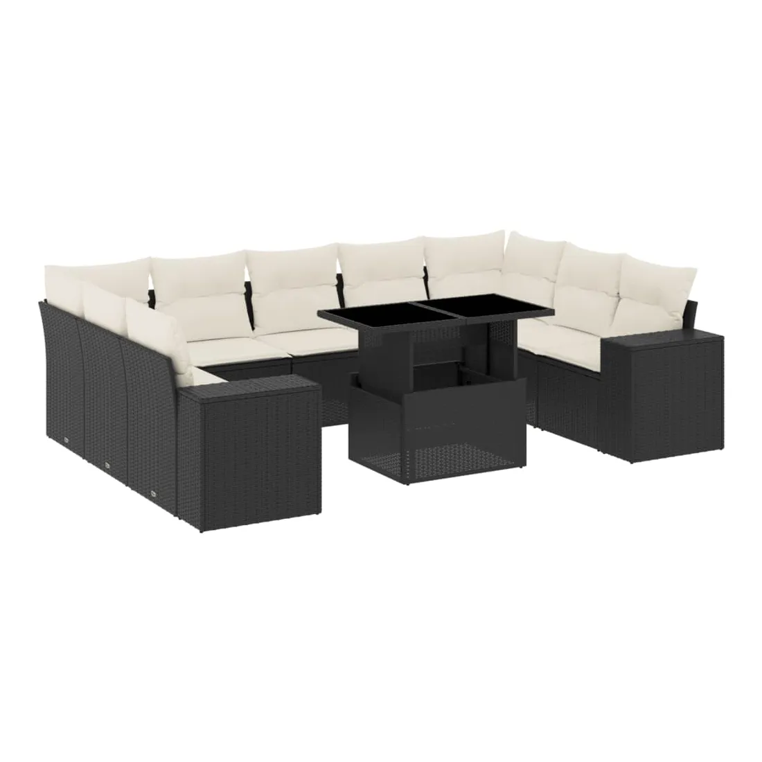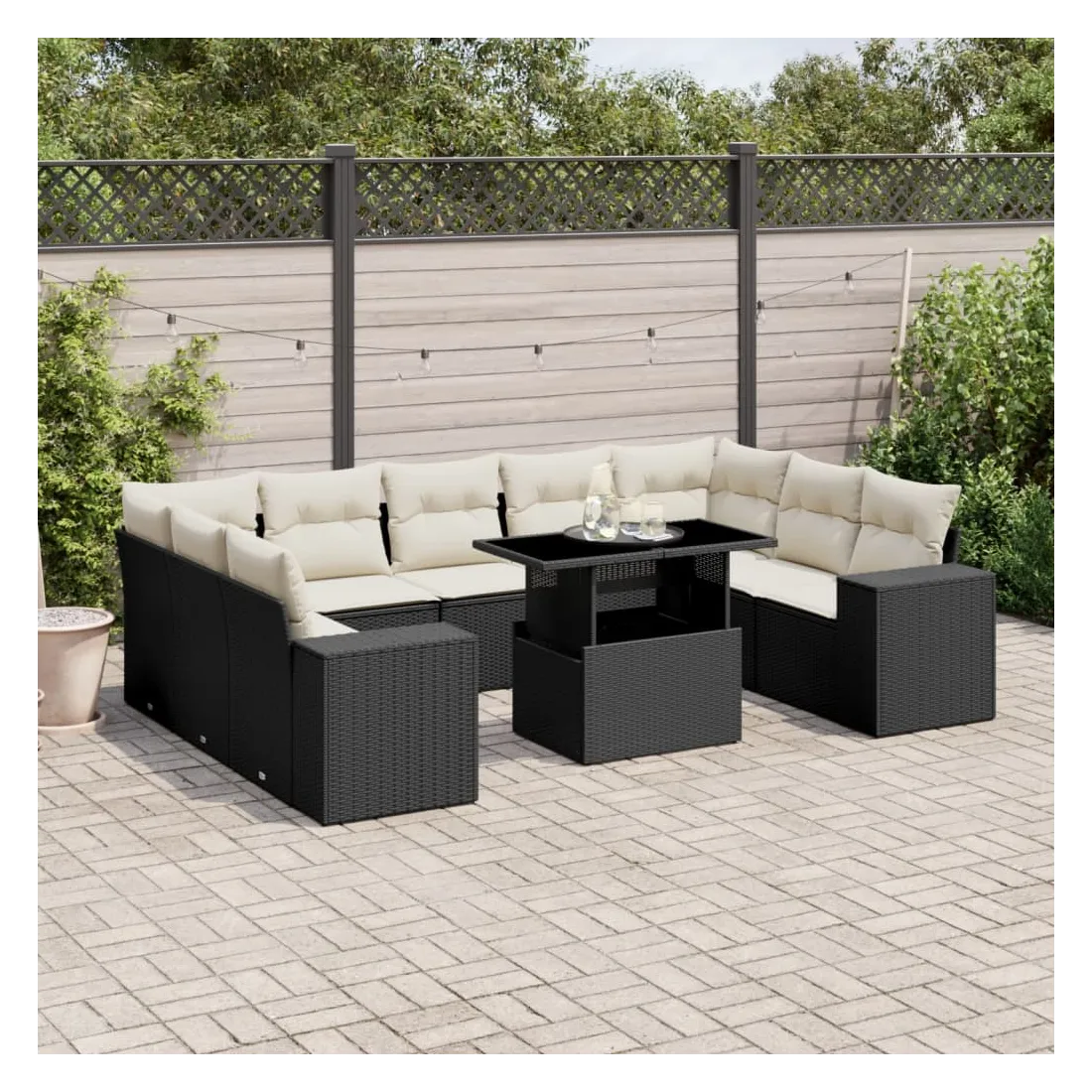 Cet ensemble de canapés de jardin est le complément parfait de votre arrière-cour, terrasse ou patio, offrant un espace confortable et accueillant pour discuter avec la famille et les amis ou simplement se détendre et profiter de l'extérieur. Matériau durable : la résine tressée, également connue sous le nom de poly rotin, est un matériau synthétique solide et nécessitant peu d'entretien qui ressemble au rotin naturel. Il est léger, facile à nettoyer et couramment utilisé pour les meubles d'extérieur en raison de sa durabilité et de ses propriétés de résistance aux intempéries.Dessus de table réglable : le dessus de table peut être soulevé pour rendre la table plus haute, ce qui transforme la table d'extérieur d'une table basse à une table de salle à manger. Elle est parfaite pour recevoir des invités ou prendre des repas à l'extérieur.Expérience d'assise confortable : ce mobilier d'extérieur, doté de coussins épais, offre une expérience d'assise confortable.Housse amovible et lavable : ces coussins de siège sont dotés de housses amovibles pour un lavage et un entretien faciles.Conception modulaire : cet ensemble de meubles d'extérieur a une conception modulaire, ce qui le rend complètement flexible et facile à déplacer, afin que vous puissiez créer un agencement de meubles d'extérieur personnalisé. Bon à savoir :Pour que vos meubles d'extérieur restent beaux, nous vous recommandons de les protéger avec une housse imperméable.