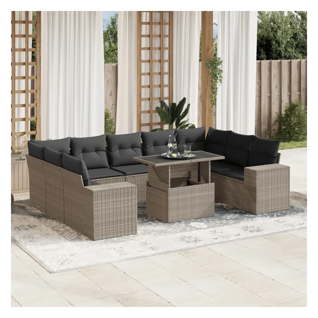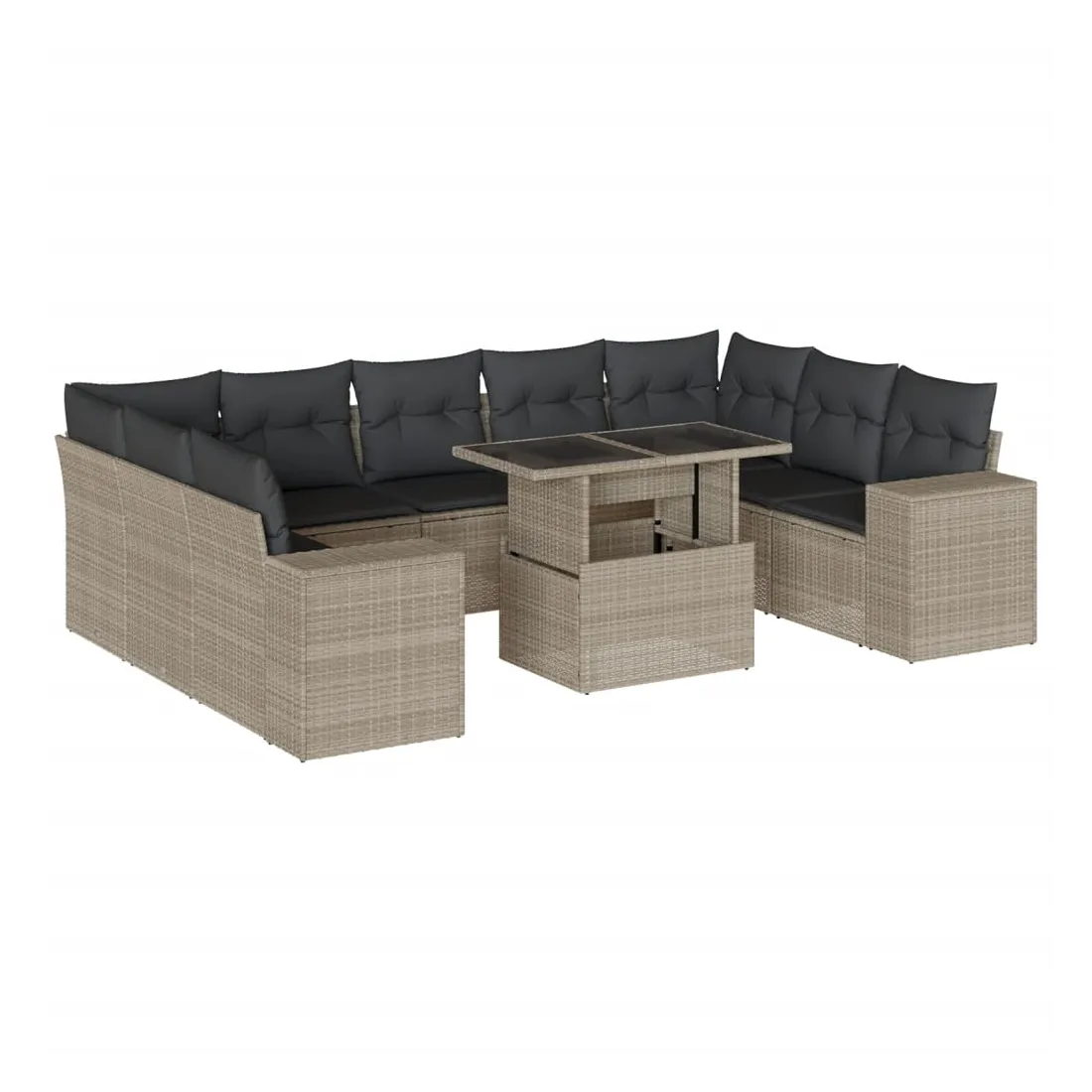Salon de jardin avec coussins 10 pcs gris clair résine tressée