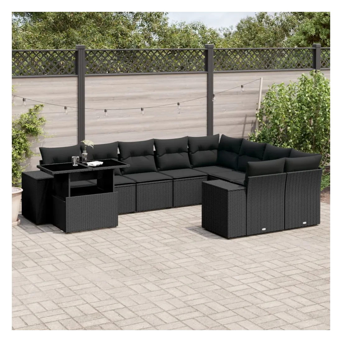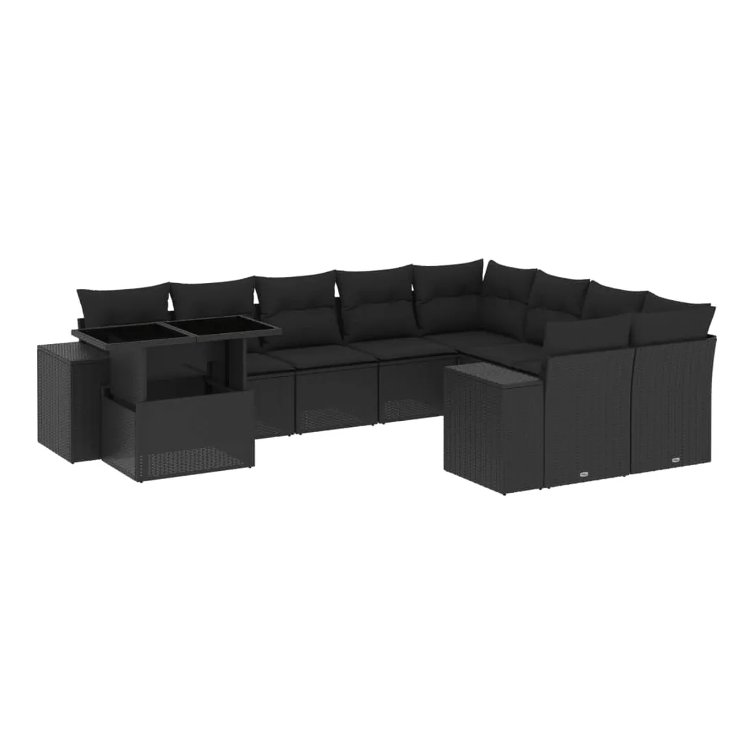 Salon de jardin 10 pcs avec coussins noir résine tressée