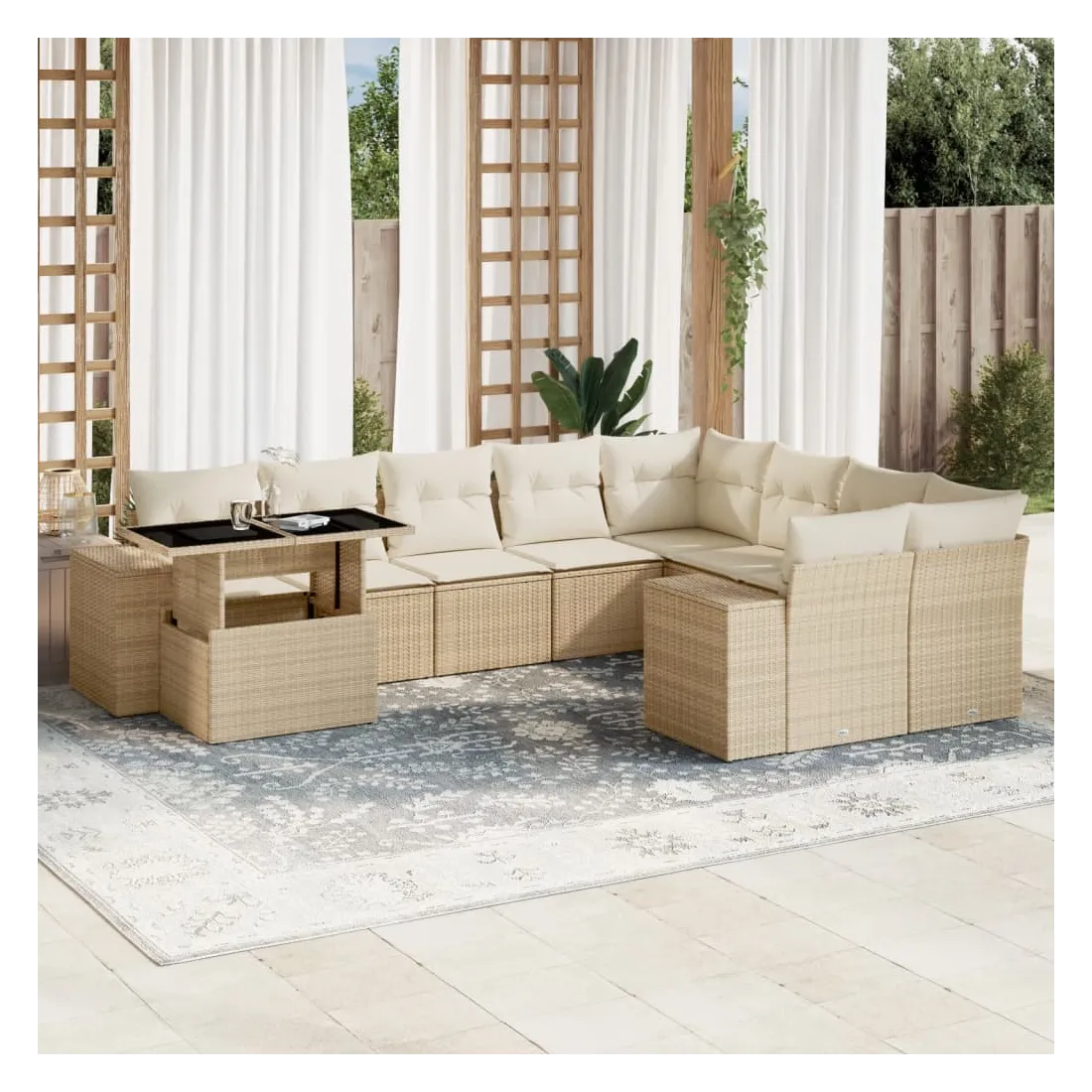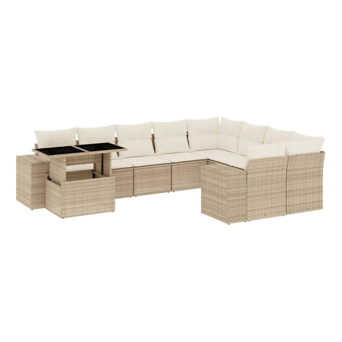 Salon de jardin avec coussins 10 pcs beige résine tressée