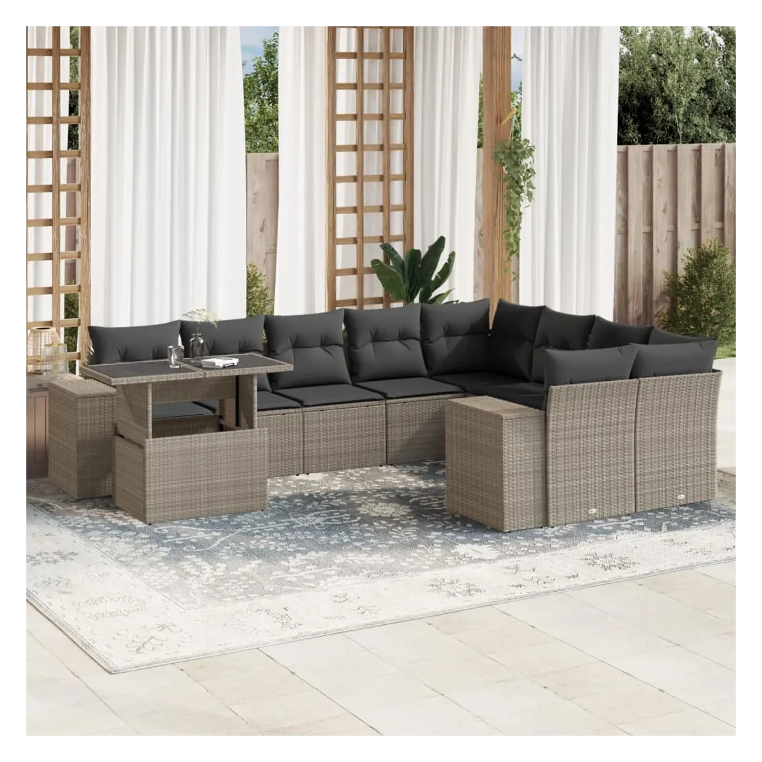 Cet ensemble de canapés de jardin est le complément parfait de votre arrière-cour, terrasse ou patio, offrant un espace confortable et accueillant pour discuter avec la famille et les amis ou simplement se détendre et profiter de l'extérieur. Matériau durable : la résine tressée, également connue sous le nom de poly rotin, est un matériau synthétique solide et nécessitant peu d'entretien qui ressemble au rotin naturel. Elle est légère, facile à nettoyer et couramment utilisée pour les meubles d'extérieur en raison de sa durabilité et de ses propriétés de résistance aux intempéries.Dessus de table réglable : le dessus de table peut être soulevé pour rendre la table plus haute, ce qui transforme la table d'extérieur d'une table basse à une table de salle à manger. Elle est parfaite pour recevoir des invités ou prendre des repas à l'extérieur.Expérience d'assise confortable : ce mobilier d'extérieur, doté de coussins épais, offre une expérience d'assise confortable.Housse amovible et lavable : ces coussins de siège sont dotés de housses amovibles pour un lavage et un entretien faciles.Conception modulaire : cet ensemble de meubles d'extérieur a une conception modulaire, ce qui le rend complètement flexible et facile à déplacer, afin que vous puissiez créer un agencement de meubles d'extérieur personnalisé. Bon à savoir :Pour que vos meubles d'extérieur restent beaux, nous vous recommandons de les protéger avec une housse imperméable.