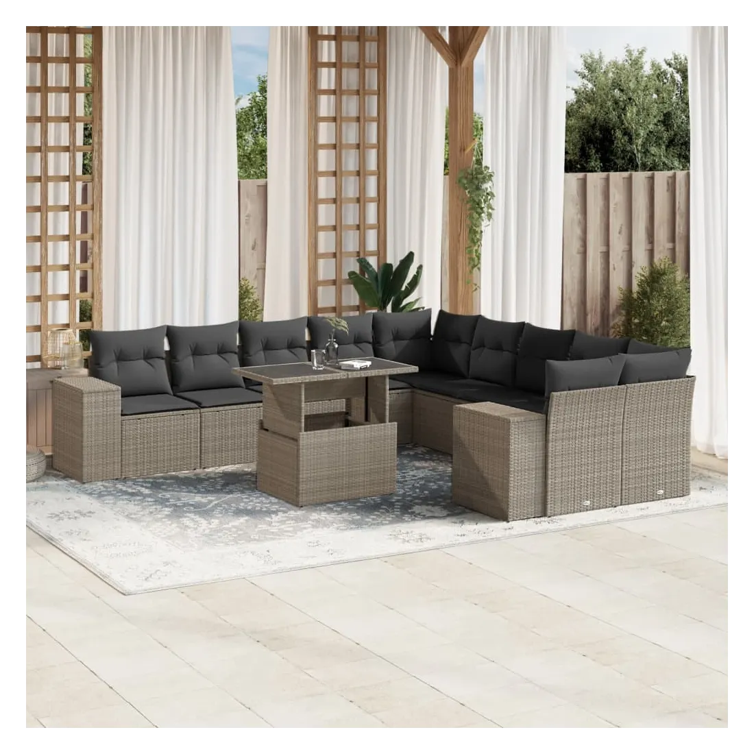 Cet ensemble de canapés de jardin est le complément parfait de votre arrière-cour, terrasse ou patio, offrant un espace confortable et accueillant pour discuter avec la famille et les amis ou simplement se détendre et profiter de l'extérieur. Matériau durable : la résine tressée, également connue sous le nom de poly rotin, est un matériau synthétique solide et nécessitant peu d'entretien qui ressemble au rotin naturel. Elle est légère, facile à nettoyer et couramment utilisée pour les meubles d'extérieur en raison de sa durabilité et de ses propriétés de résistance aux intempéries.Dessus de table réglable : le dessus de table peut être soulevé pour rendre la table plus haute, ce qui transforme la table d'extérieur d'une table basse à une table de salle à manger. Elle est parfaite pour recevoir des invités ou prendre des repas à l'extérieur.Expérience d'assise confortable : ce mobilier d'extérieur, doté de coussins épais, offre une expérience d'assise confortable.Housse amovible et lavable : ces coussins de siège sont dotés de housses amovibles pour un lavage et un entretien faciles.Conception modulaire : cet ensemble de meubles d'extérieur a une conception modulaire, ce qui le rend complètement flexible et facile à déplacer, afin que vous puissiez créer un agencement de meubles d'extérieur personnalisé. Bon à savoir :Pour que vos meubles d'extérieur restent beaux, nous vous recommandons de les protéger avec une housse imperméable.