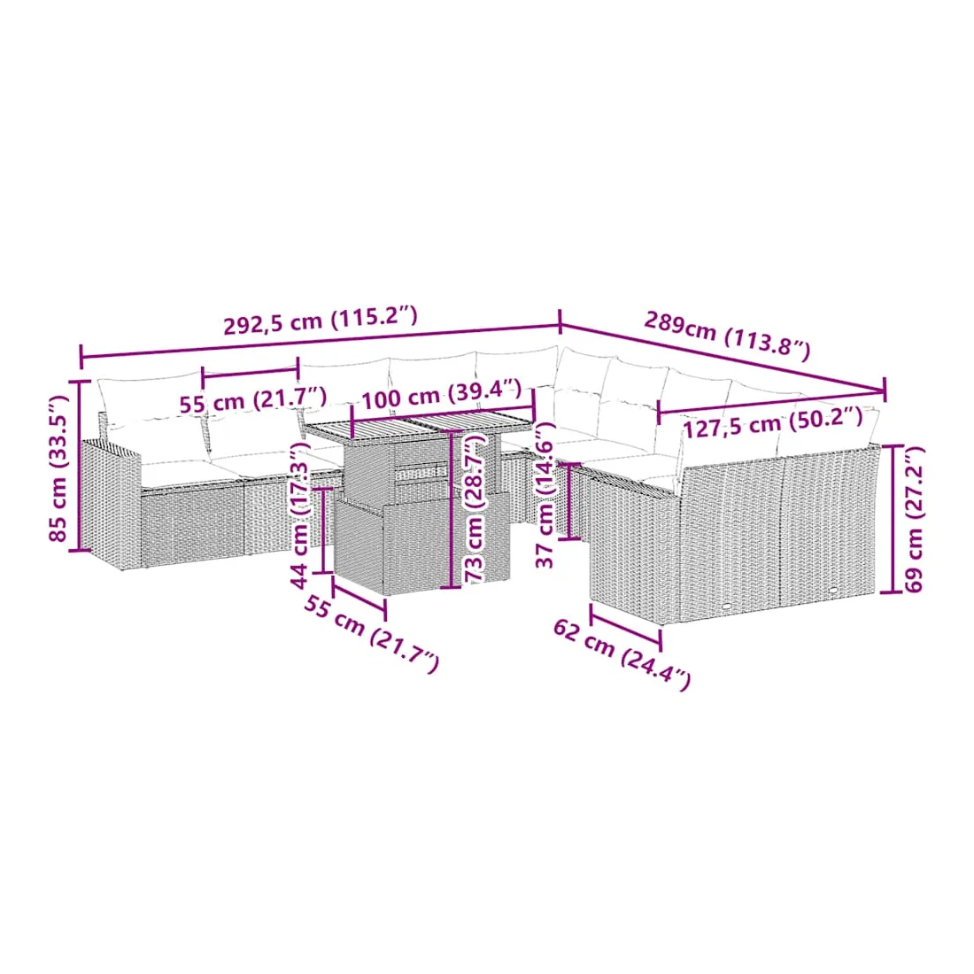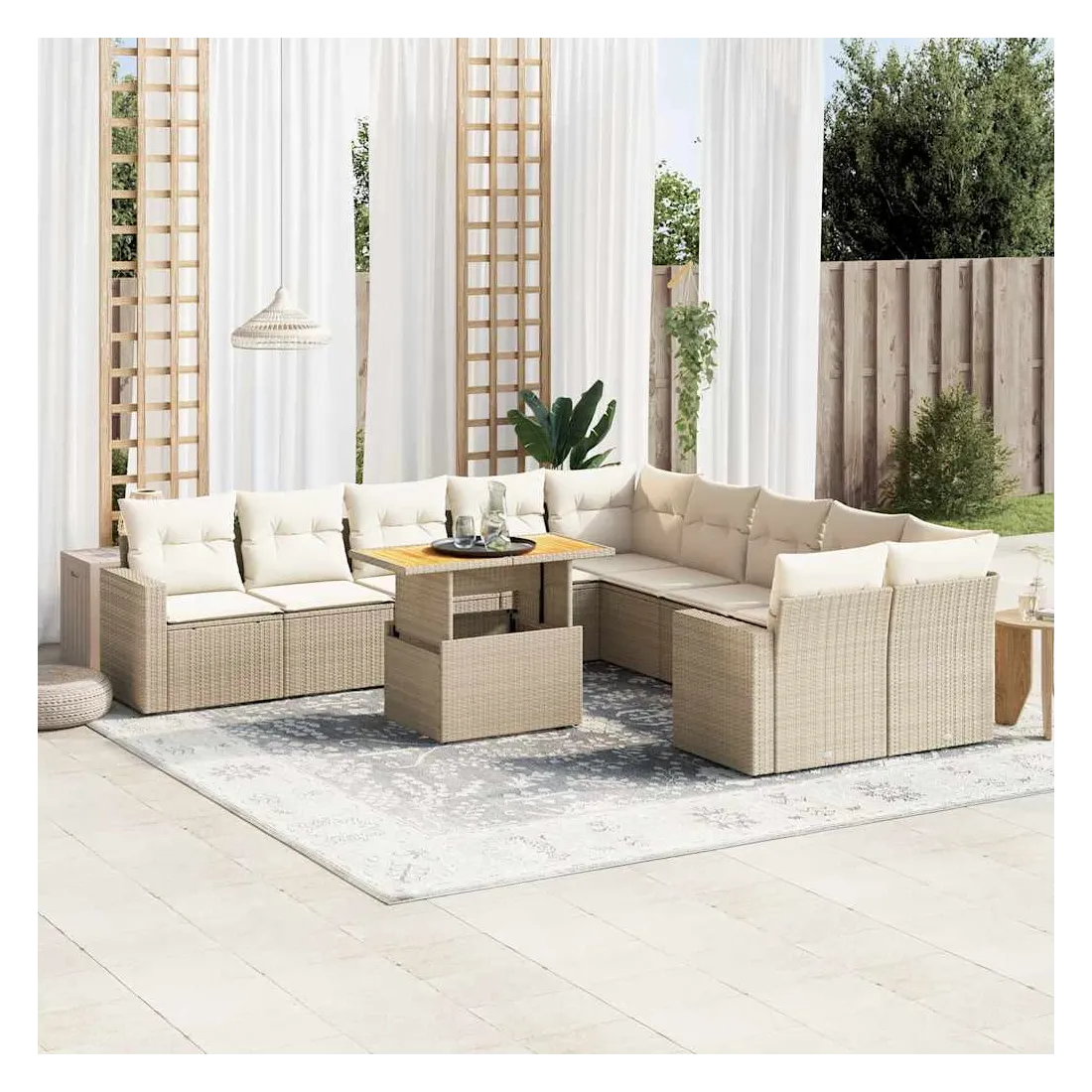 Cet ensemble de canapés de jardin est le complément parfait de votre arrière-cour, terrasse ou patio, offrant un espace confortable et accueillant pour discuter avec la famille et les amis ou simplement se détendre et profiter de l'extérieur. Matériau durable : la résine tressée, également connue sous le nom de poly rotin, est un matériau synthétique solide et nécessitant peu d'entretien qui ressemble au rotin naturel. Il est léger, facile à nettoyer et couramment utilisé pour les meubles d'extérieur en raison de sa durabilité et de ses propriétés de résistance aux intempéries.Dessus de table réglable : le dessus de table peut être soulevé pour rendre la table plus haute, ce qui transforme la table d'extérieur d'une table basse à une table de salle à manger. Elle est parfaite pour recevoir des invités ou prendre des repas à l'extérieur.Expérience d'assise confortable : ce mobilier d'extérieur, doté de coussins épais, offre une expérience d'assise confortable.Housse amovible et lavable : ces coussins de siège sont dotés de housses amovibles pour un lavage et un entretien faciles.Conception modulaire : cet ensemble de meubles d'extérieur a une conception modulaire, ce qui le rend complètement flexible et facile à déplacer, afin que vous puissiez créer un agencement de meubles d'extérieur personnalisé. Bon à savoir :Pour que vos meubles d'extérieur restent beaux, nous vous recommandons de les protéger avec une housse imperméable.