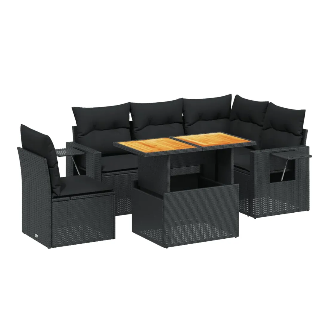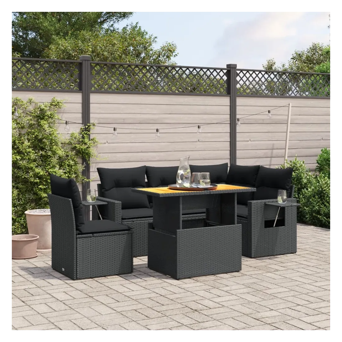 Salon de jardin 6 pcs avec coussins noir résine tressée