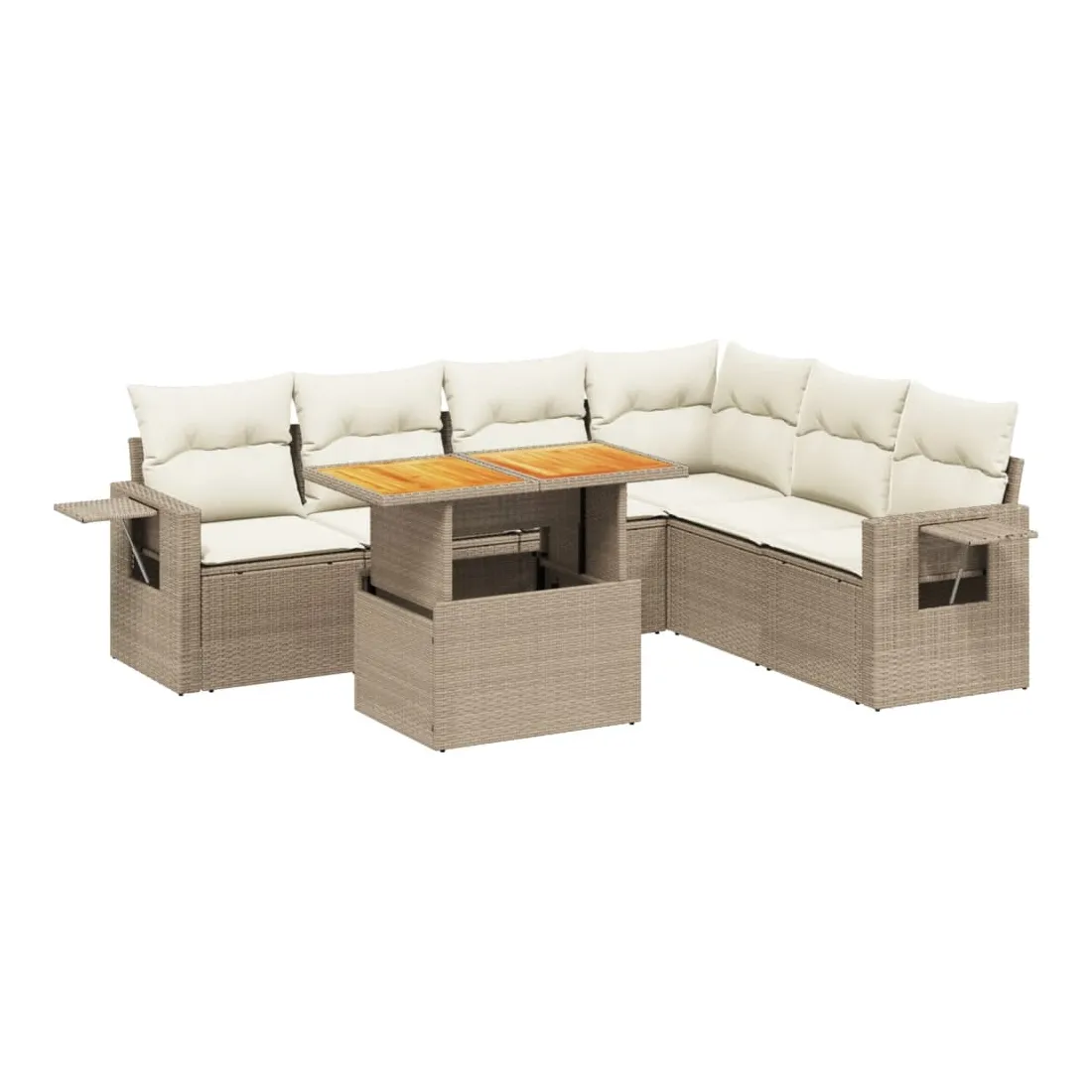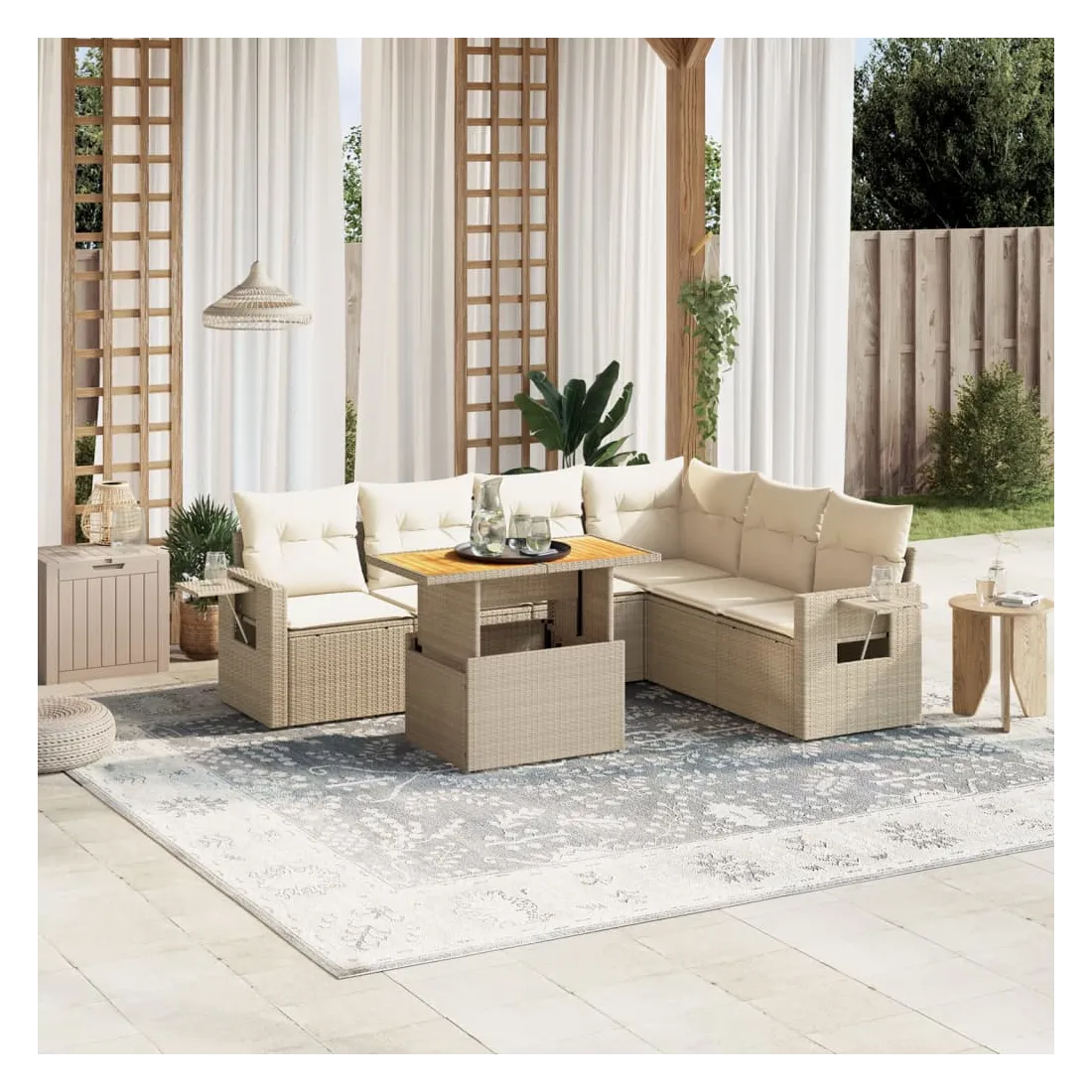 Salon de jardin avec coussins 7 pcs beige résine tressée