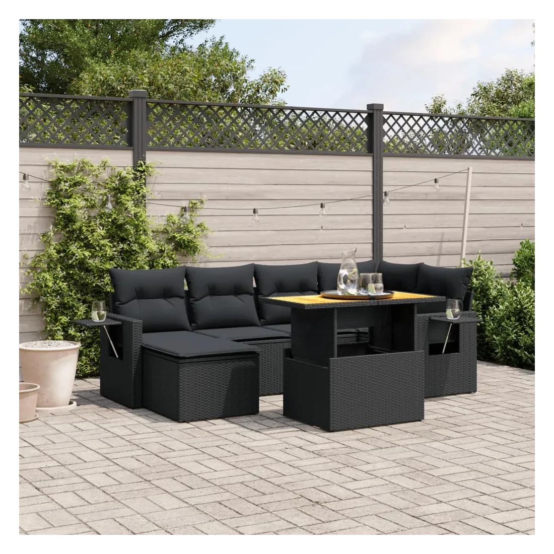Cet ensemble de canapés de jardin est le complément parfait de votre arrière-cour, terrasse ou patio, offrant un espace confortable et accueillant pour discuter avec la famille et les amis ou simplement se détendre et profiter de l'extérieur. Matériau durable : la résine tressée, également connue sous le nom de poly rotin, est un matériau synthétique solide et nécessitant peu d'entretien qui ressemble au rotin naturel. Il est léger, facile à nettoyer et couramment utilisé pour les meubles d'extérieur en raison de sa durabilité et de ses propriétés de résistance aux intempéries.Dessus de table réglable : le dessus de table peut être soulevé pour rendre la table plus haute, ce qui transforme la table d'extérieur d'une table basse à une table de salle à manger. Elle est parfaite pour recevoir des invités ou prendre des repas à l'extérieur.Table d'appoint pratique : ce mobilier d'extérieur comprend une table d'appoint pliable avec un ressort à gaz sur les accoudoirs, offrant un endroit pratique pour garder vos essentiels à portée de main.Housse amovible et lavable : ces coussins de siège sont dotés de housses amovibles pour un lavage et un entretien faciles.Conception modulaire : cet ensemble de meubles d'extérieur a une conception modulaire, ce qui le rend complètement flexible et facile à déplacer, afin que vous puissiez créer un agencement de meubles d'extérieur personnalisé. Bon à savoir :Pour que vos meubles d'extérieur restent beaux, nous vous recommandons de les protéger avec une housse imperméable.