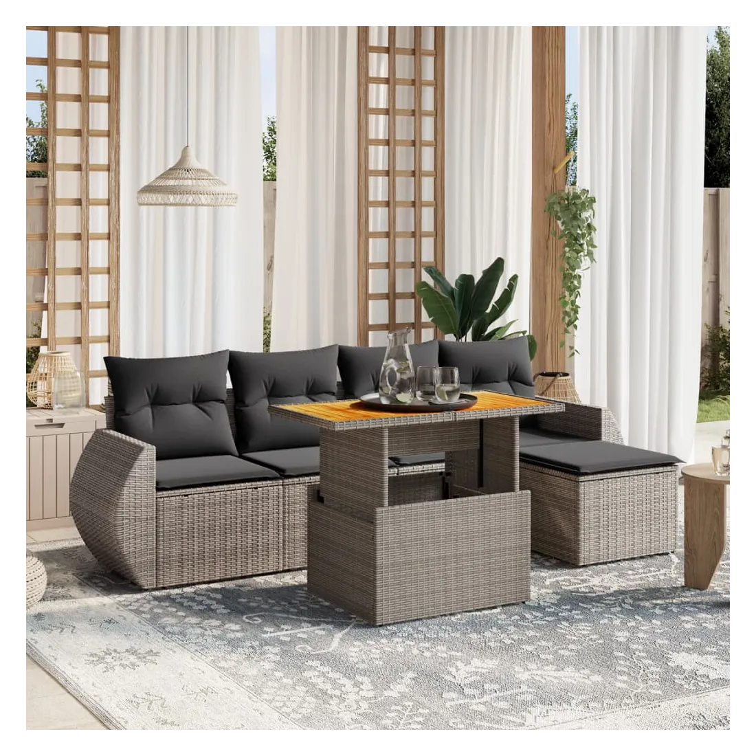 Cet ensemble de canapés de jardin est le complément parfait de votre arrière-cour, terrasse ou patio, offrant un espace confortable et accueillant pour discuter avec la famille et les amis ou simplement se détendre et profiter de l'extérieur. Matériau durable : la résine tressée, également connue sous le nom de poly rotin, est un matériau synthétique solide et nécessitant peu d'entretien qui ressemble au rotin naturel. Il est léger, facile à nettoyer et couramment utilisé pour les meubles d'extérieur en raison de sa durabilité et de ses propriétés de résistance aux intempéries.Dessus de table réglable : le dessus de table peut être soulevé pour rendre la table plus haute, ce qui transforme la table d'extérieur d'une table basse à une table de salle à manger. Elle est parfaite pour recevoir des invités ou prendre des repas à l'extérieur.Expérience d'assise confortable : ce mobilier d'extérieur, doté de coussins épais, offre une expérience d'assise confortable.Housse amovible et lavable : ces coussins de siège sont dotés de housses amovibles pour un lavage et un entretien faciles.Conception modulaire : cet ensemble de meubles d'extérieur a une conception modulaire, ce qui le rend complètement flexible et facile à déplacer, afin que vous puissiez créer un agencement de meubles d'extérieur personnalisé. Bon à savoir :Pour que vos meubles d'extérieur restent beaux, nous vous recommandons de les protéger avec une housse imperméable.