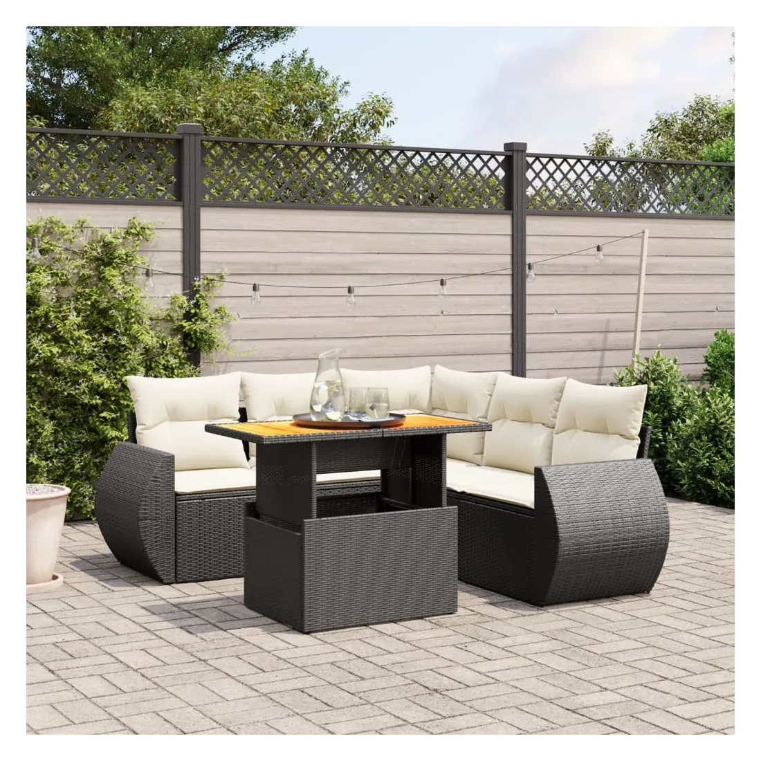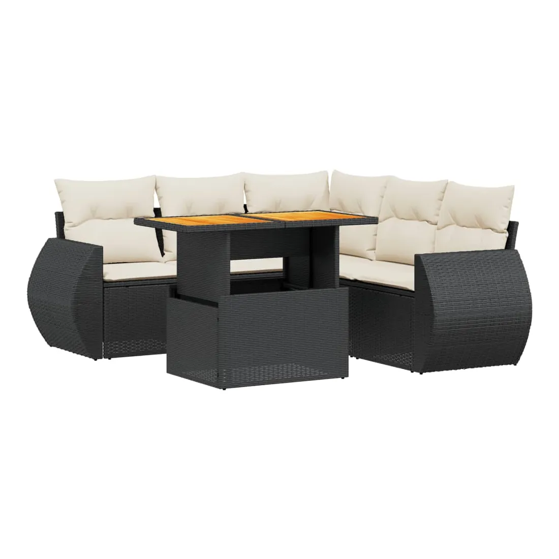 Salon de jardin 6 pcs avec coussins noir résine tressée