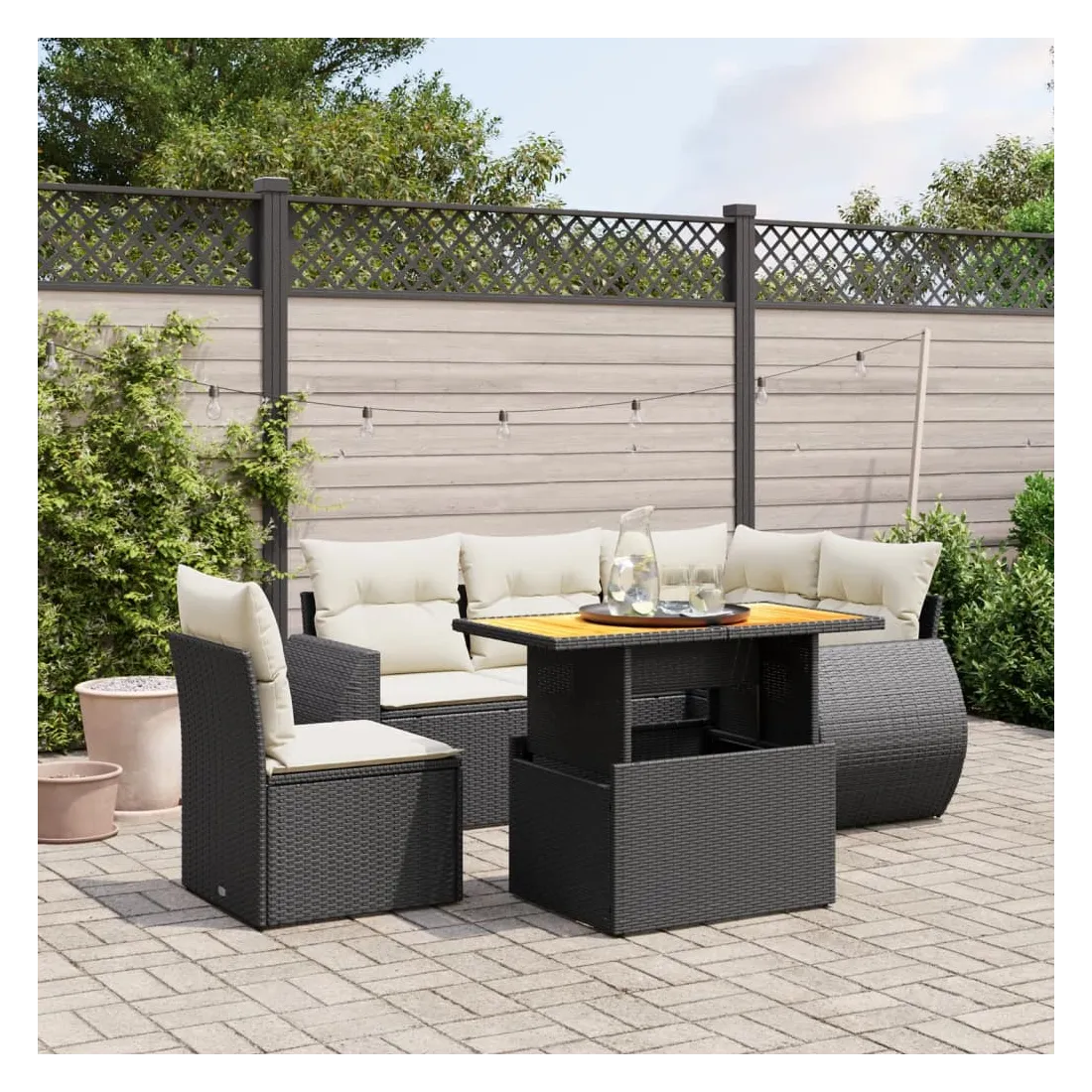 Cet ensemble de canapés de jardin est le complément parfait de votre arrière-cour, terrasse ou patio, offrant un espace confortable et accueillant pour discuter avec la famille et les amis ou simplement se détendre et profiter de l'extérieur. Matériau durable : la résine tressée, également connue sous le nom de poly rotin, est un matériau synthétique solide et nécessitant peu d'entretien qui ressemble au rotin naturel. Il est léger, facile à nettoyer et couramment utilisé pour les meubles d'extérieur en raison de sa durabilité et de ses propriétés de résistance aux intempéries.Dessus de table réglable : le dessus de table peut être soulevé pour rendre la table plus haute, ce qui transforme la table d'extérieur d'une table basse à une table de salle à manger. Elle est parfaite pour recevoir des invités ou prendre des repas à l'extérieur.Expérience d'assise confortable : ce mobilier d'extérieur, doté de coussins épais, offre une expérience d'assise confortable.Housse amovible et lavable : ces coussins de siège sont dotés de housses amovibles pour un lavage et un entretien faciles.Conception modulaire : cet ensemble de meubles d'extérieur a une conception modulaire, ce qui le rend complètement flexible et facile à déplacer, afin que vous puissiez créer un agencement de meubles d'extérieur personnalisé. Bon à savoir :Pour que vos meubles d'extérieur restent beaux, nous vous recommandons de les protéger avec une housse imperméable.