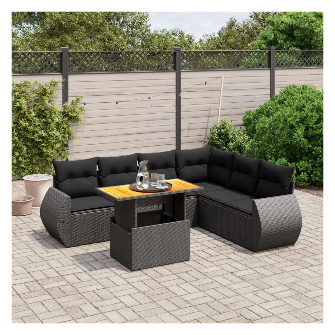 Cet ensemble de canapés de jardin est le complément parfait de votre arrière-cour, terrasse ou patio, offrant un espace confortable et accueillant pour discuter avec la famille et les amis ou simplement se détendre et profiter de l'extérieur. Matériau durable : la résine tressée, également connue sous le nom de poly rotin, est un matériau synthétique solide et nécessitant peu d'entretien qui ressemble au rotin naturel. Il est léger, facile à nettoyer et couramment utilisé pour les meubles d'extérieur en raison de sa durabilité et de ses propriétés de résistance aux intempéries.Dessus de table réglable : le dessus de table peut être soulevé pour rendre la table plus haute, ce qui transforme la table d'extérieur d'une table basse à une table de salle à manger. Elle est parfaite pour recevoir des invités ou prendre des repas à l'extérieur.Expérience d'assise confortable : ce mobilier d'extérieur, doté de coussins épais, offre une expérience d'assise confortable.Housse amovible et lavable : ces coussins de siège sont dotés de housses amovibles pour un lavage et un entretien faciles.Conception modulaire : cet ensemble de meubles d'extérieur a une conception modulaire, ce qui le rend complètement flexible et facile à déplacer, afin que vous puissiez créer un agencement de meubles d'extérieur personnalisé. Bon à savoir :Pour que vos meubles d'extérieur restent beaux, nous vous recommandons de les protéger avec une housse imperméable.