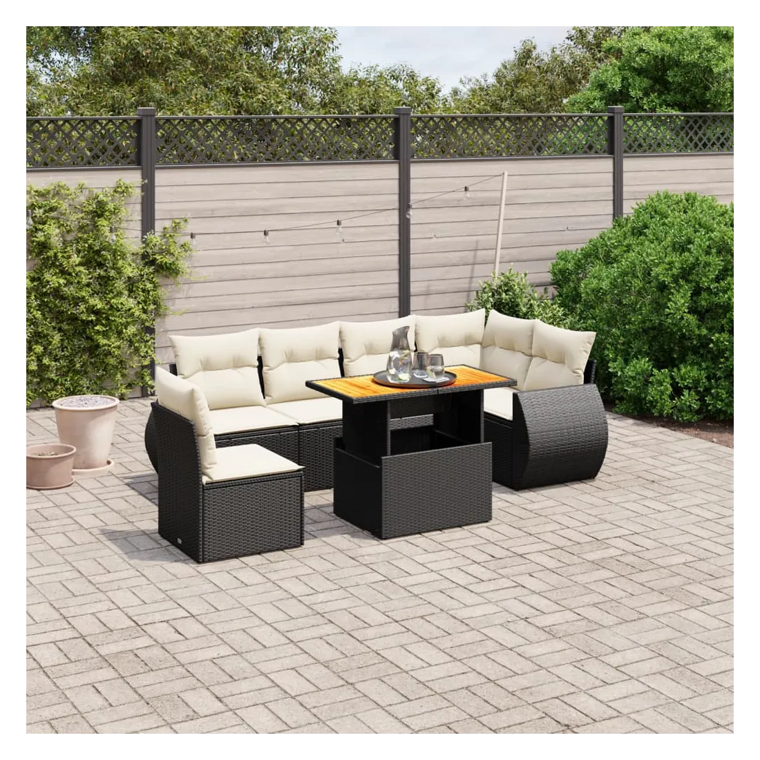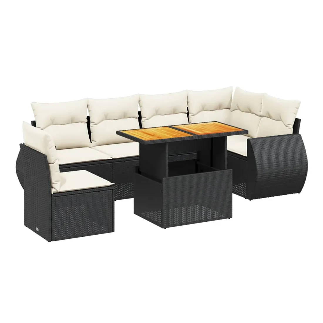 Salon de jardin 7 pcs avec coussins noir résine tressée