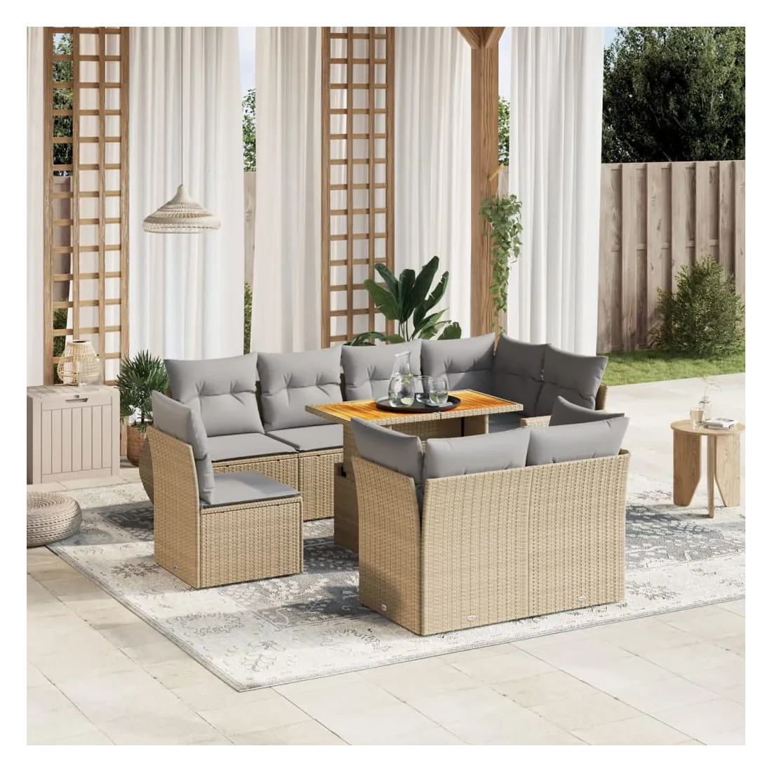 Cet ensemble de canapés de jardin est le complément parfait de votre arrière-cour, terrasse ou patio, offrant un espace confortable et accueillant pour discuter avec la famille et les amis ou simplement se détendre et profiter de l'extérieur. Matériau durable : la résine tressée, également connue sous le nom de poly rotin, est un matériau synthétique solide et nécessitant peu d'entretien qui ressemble au rotin naturel. Il est léger, facile à nettoyer et couramment utilisé pour les meubles d'extérieur en raison de sa durabilité et de ses propriétés de résistance aux intempéries.Dessus de table réglable : le dessus de table peut être soulevé pour rendre la table plus haute, ce qui transforme la table d'extérieur d'une table basse à une table de salle à manger. Elle est parfaite pour recevoir des invités ou prendre des repas à l'extérieur.Expérience d'assise confortable : ce mobilier d'extérieur, doté de coussins épais, offre une expérience d'assise confortable.Housse amovible et lavable : ces coussins de siège sont dotés de housses amovibles pour un lavage et un entretien faciles.Conception modulaire : cet ensemble de meubles d'extérieur a une conception modulaire, ce qui le rend complètement flexible et facile à déplacer, afin que vous puissiez créer un agencement de meubles d'extérieur personnalisé. Bon à savoir :Pour que vos meubles d'extérieur restent beaux, nous vous recommandons de les protéger avec une housse imperméable.