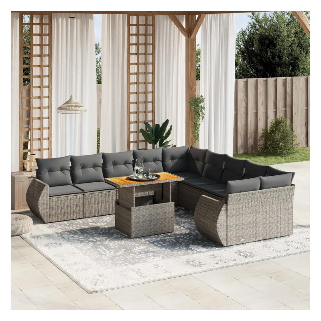 Cet ensemble de canapés de jardin est le complément parfait de votre arrière-cour, terrasse ou patio, offrant un espace confortable et accueillant pour discuter avec la famille et les amis ou simplement se détendre et profiter de l'extérieur. Matériau durable : la résine tressée, également connue sous le nom de poly rotin, est un matériau synthétique solide et nécessitant peu d'entretien qui ressemble au rotin naturel. Il est léger, facile à nettoyer et couramment utilisé pour les meubles d'extérieur en raison de sa durabilité et de ses propriétés de résistance aux intempéries.Dessus de table réglable : le dessus de table peut être soulevé pour rendre la table plus haute, ce qui transforme la table d'extérieur d'une table basse à une table de salle à manger. Elle est parfaite pour recevoir des invités ou prendre des repas à l'extérieur.Expérience d'assise confortable : ce mobilier d'extérieur, doté de coussins épais, offre une expérience d'assise confortable.Housse amovible et lavable : ces coussins de siège sont dotés de housses amovibles pour un lavage et un entretien faciles.Conception modulaire : cet ensemble de meubles d'extérieur a une conception modulaire, ce qui le rend complètement flexible et facile à déplacer, afin que vous puissiez créer un agencement de meubles d'extérieur personnalisé. Bon à savoir :Pour que vos meubles d'extérieur restent beaux, nous vous recommandons de les protéger avec une housse imperméable.