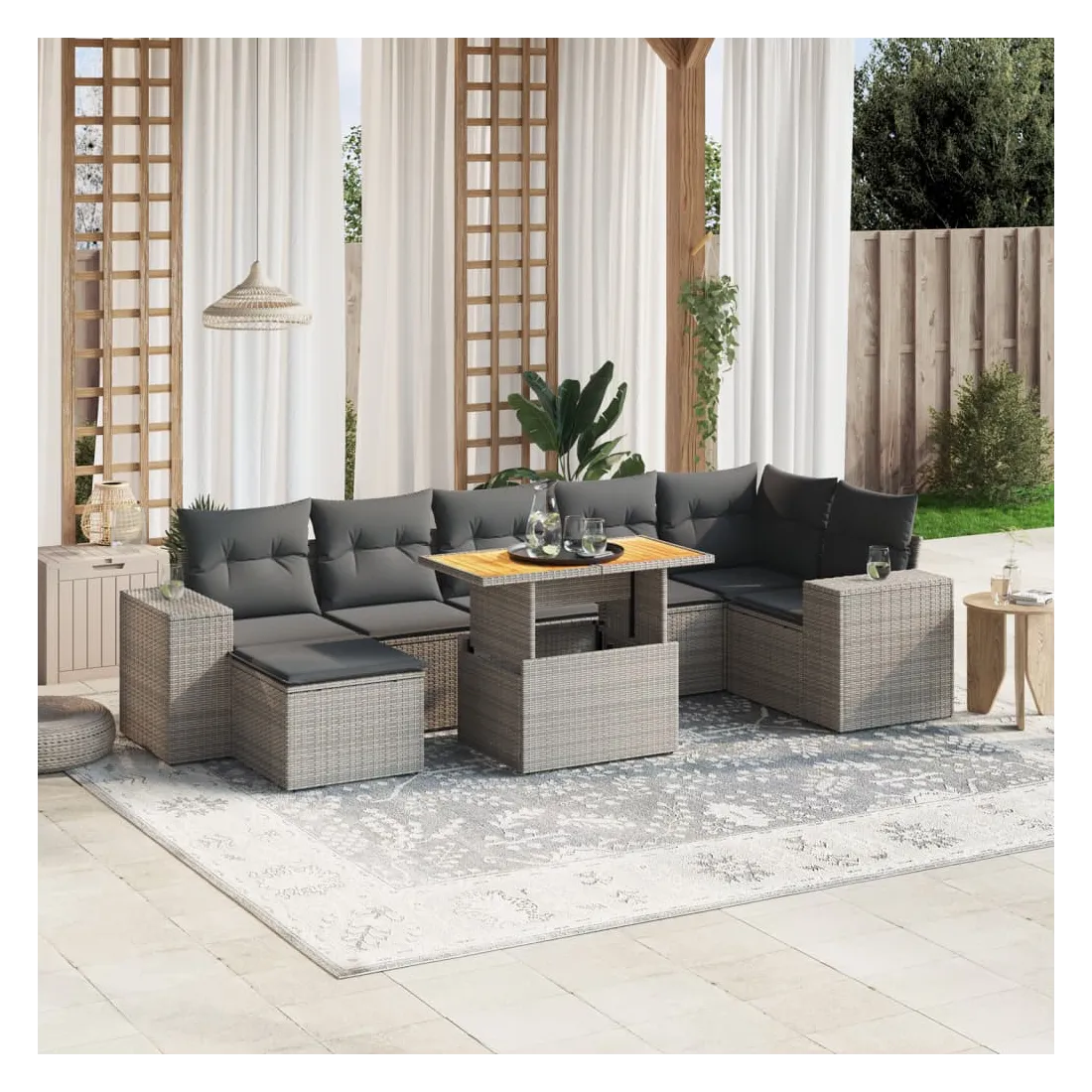 Cet ensemble de canapés de jardin est le complément parfait de votre arrière-cour, terrasse ou patio, offrant un espace confortable et accueillant pour discuter avec la famille et les amis ou simplement se détendre et profiter de l'extérieur. Matériau durable : la résine tressée, également connue sous le nom de poly rotin, est un matériau synthétique solide et nécessitant peu d'entretien qui ressemble au rotin naturel. Il est léger, facile à nettoyer et couramment utilisé pour les meubles d'extérieur en raison de sa durabilité et de ses propriétés de résistance aux intempéries.Dessus de table réglable : le dessus de table peut être soulevé pour rendre la table plus haute, ce qui transforme la table d'extérieur d'une table basse à une table de salle à manger. Elle est parfaite pour recevoir des invités ou prendre des repas à l'extérieur.Expérience d'assise confortable : ce mobilier d'extérieur, doté de coussins épais, offre une expérience d'assise confortable.Housse amovible et lavable : ces coussins de siège sont dotés de housses amovibles pour un lavage et un entretien faciles.Conception modulaire : cet ensemble de meubles d'extérieur a une conception modulaire, ce qui le rend complètement flexible et facile à déplacer, afin que vous puissiez créer un agencement de meubles d'extérieur personnalisé. Bon à savoir :Pour que vos meubles d'extérieur restent beaux, nous vous recommandons de les protéger avec une housse imperméable.