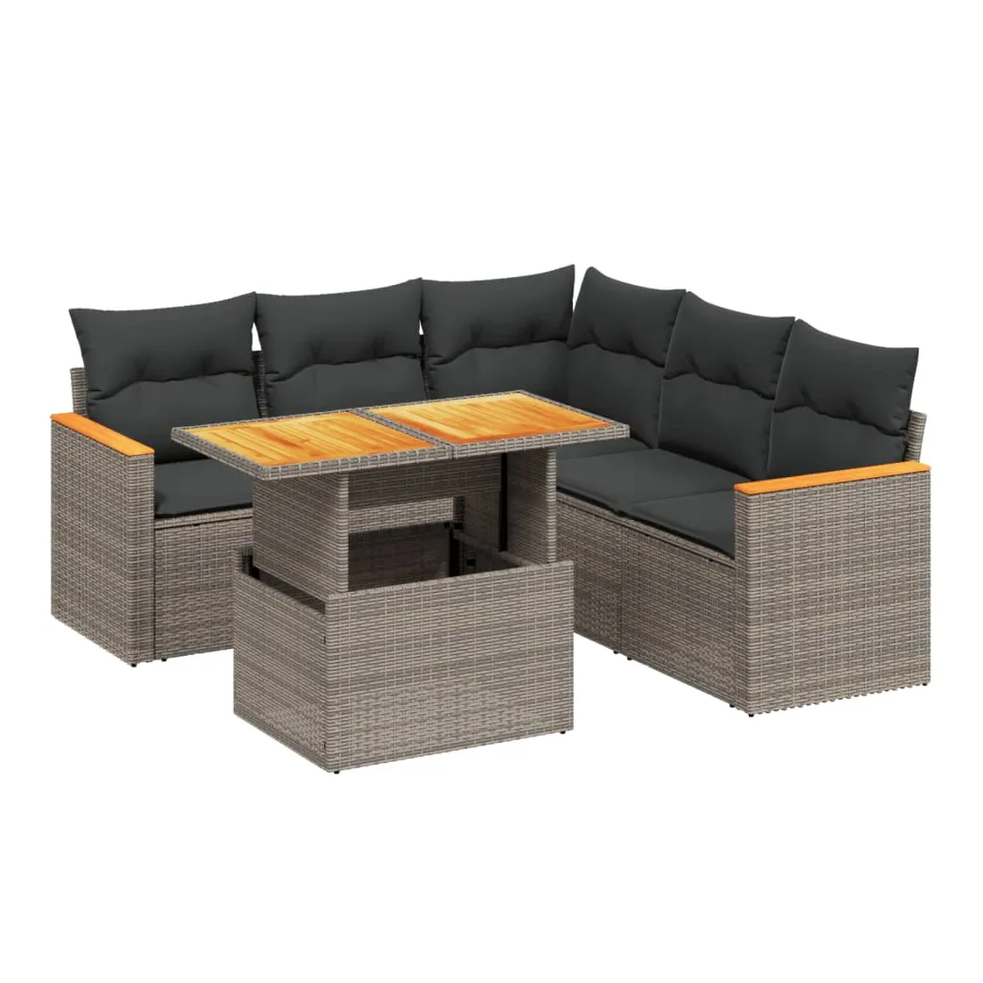 Salon de jardin 6 pcs avec coussins gris résine tressée