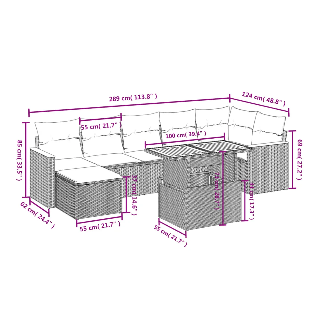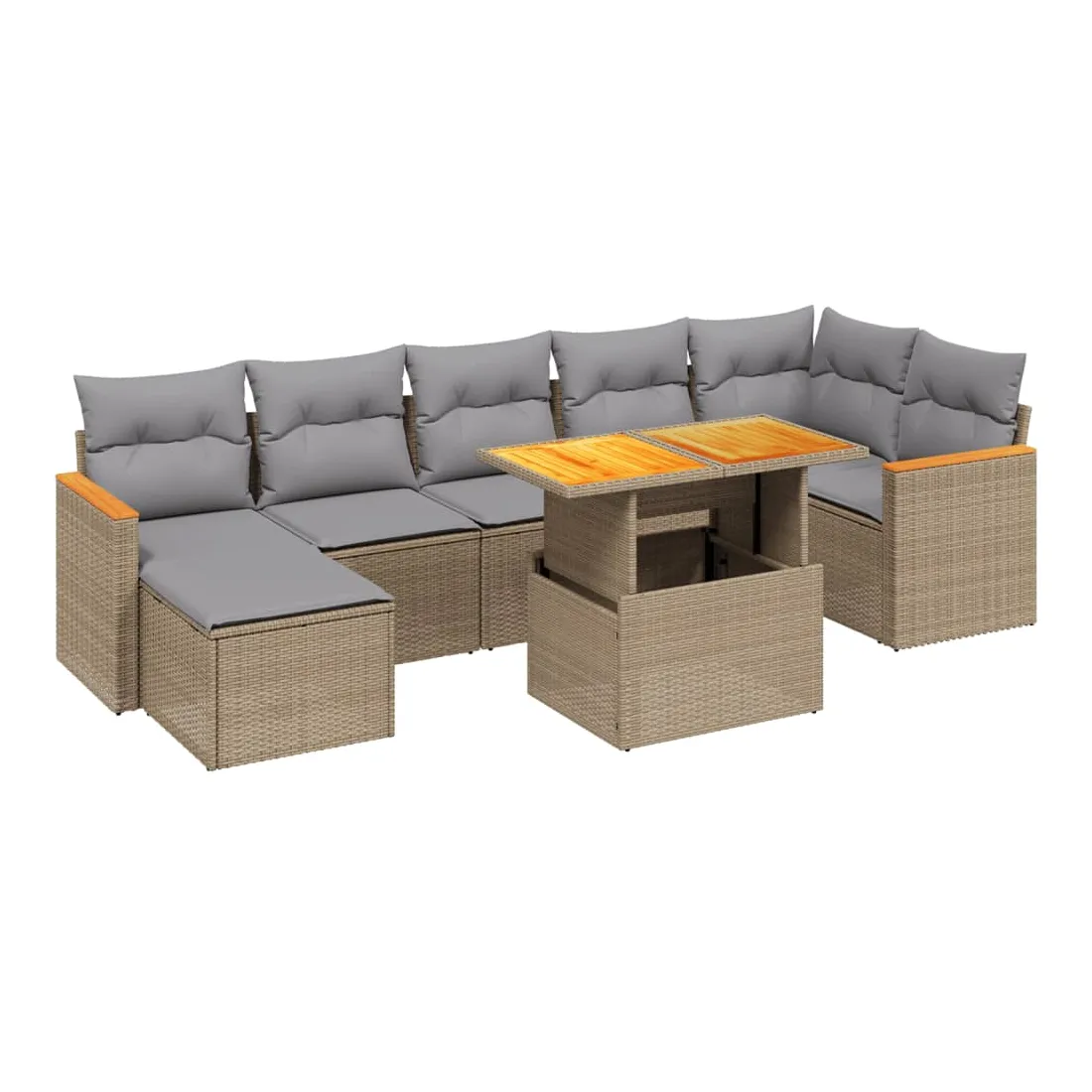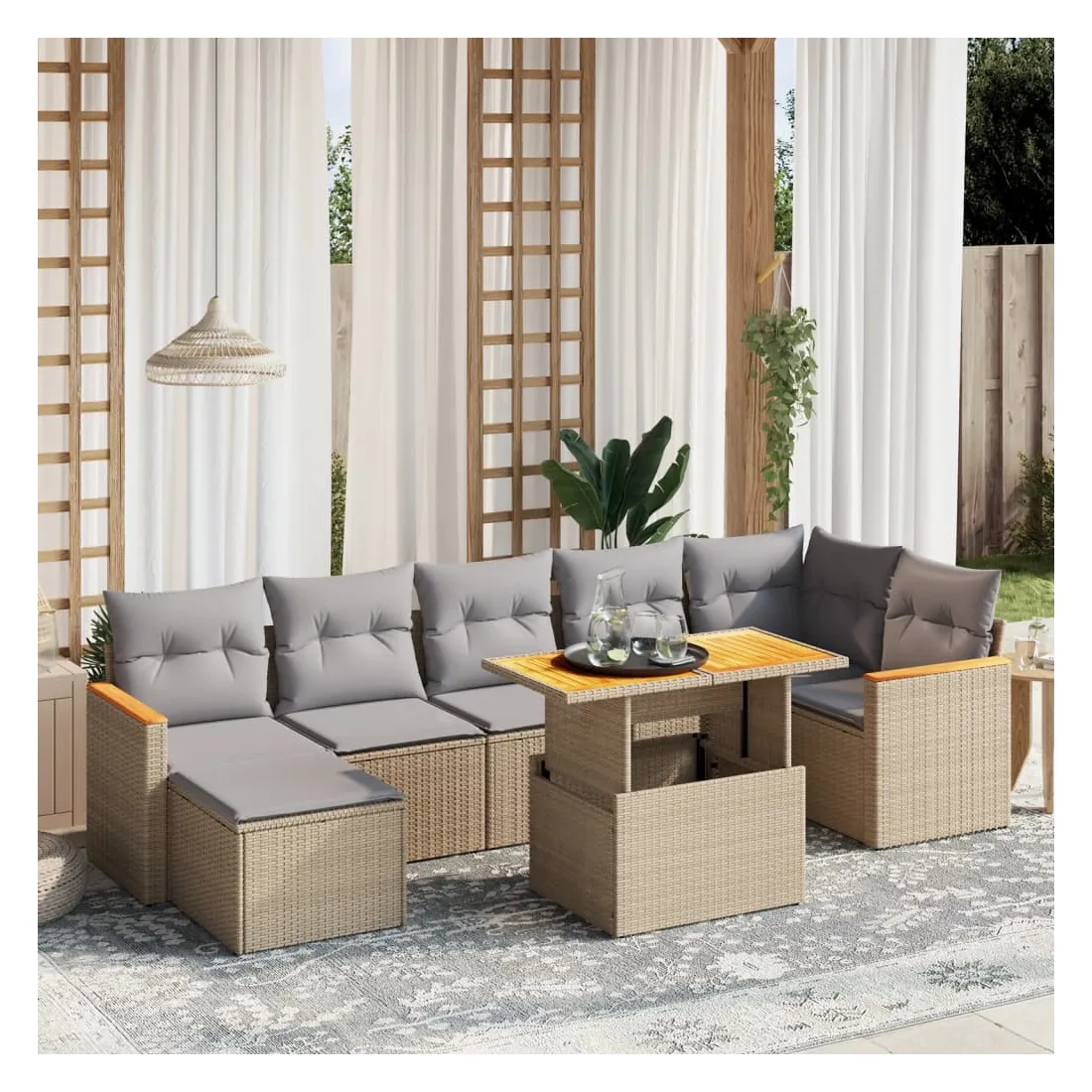 Salon de jardin avec coussins 8 pcs beige résine tressée